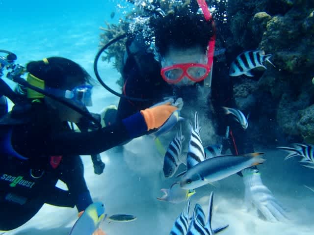 コンディション:北西の風 気温32℃ 水温29℃ 透明度15~25m