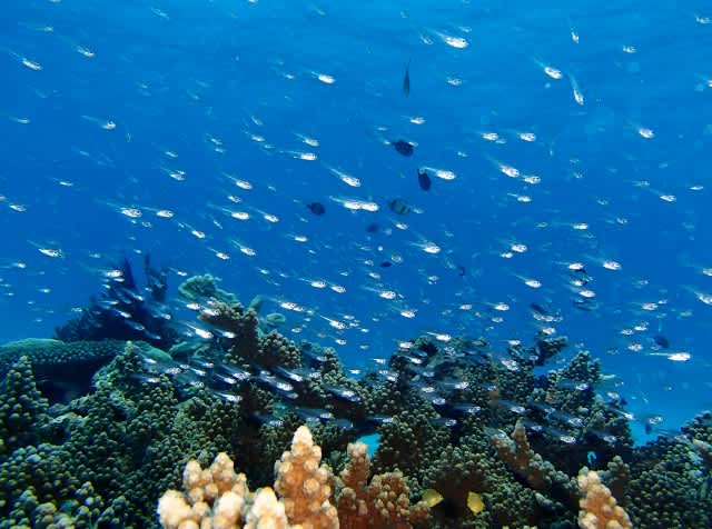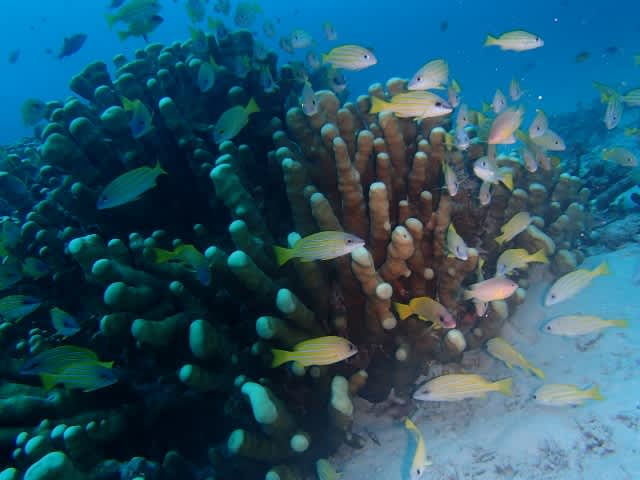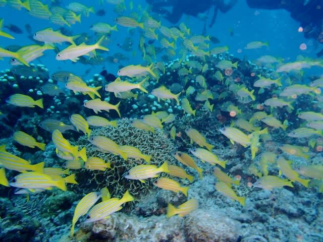 大きなコモンシコロにデバスズメ ノコギリダイ ヨスジフエダイが群れむれ群れ!