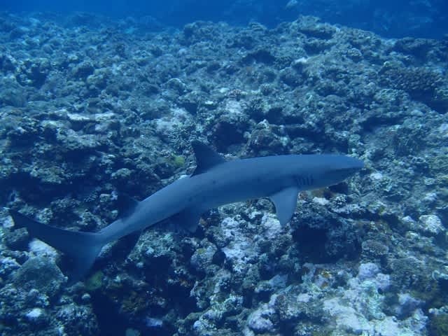 2mくらいのホワイトチップが目の前を行ったり来たり(^◇^) 目の前でばっちり見れちゃいましたぁ)^o^(