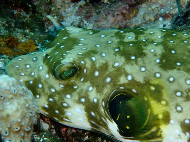 浅い音にはかわいいサイズのサザナミフグがお昼寝してて