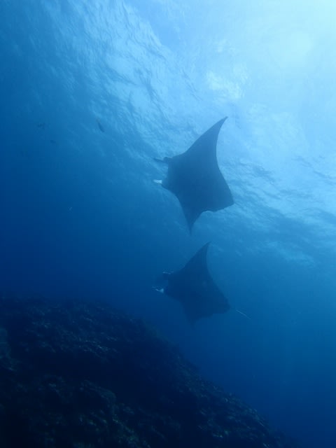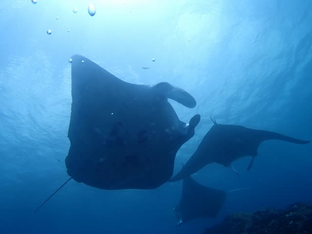 船のすぐ近くで真下にマンタが泳いでいったり!