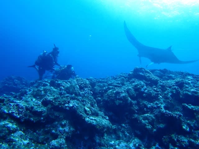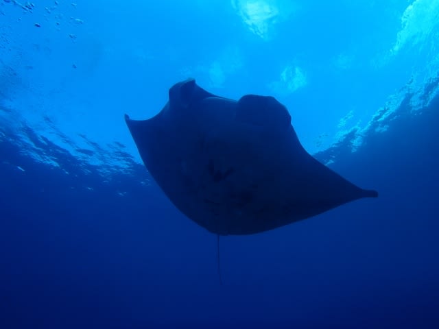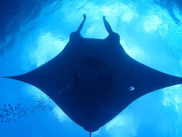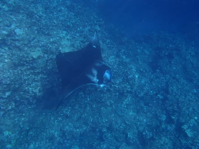 海に入ってすぐに、船の下にマンタ登場♪