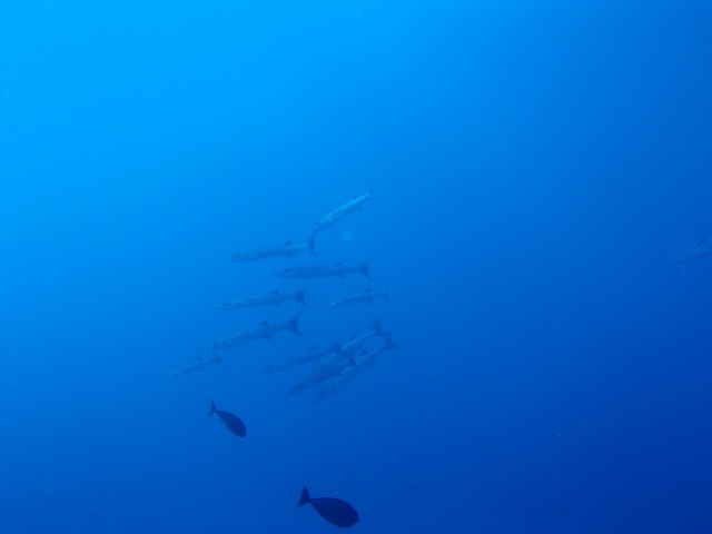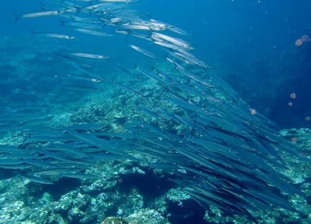 スズメダイやカマスがぐんぐん近くに寄って来て♪