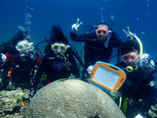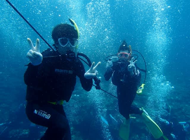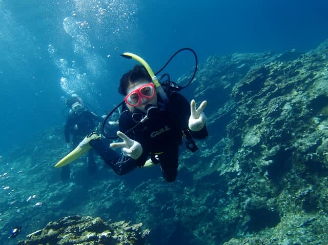 昨日初ダイビングのミサキちゃんなんか ガンガン泳いで