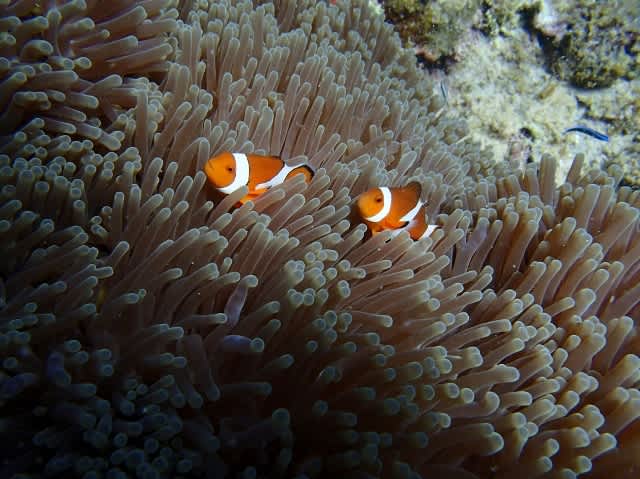 太陽で煌く魚たち@@ クマノミもいつもよりうれしそうです♪
