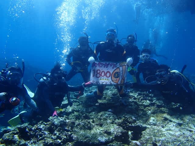 ここでリピーターのハセガワさん祝1800本記念ダイブです!!