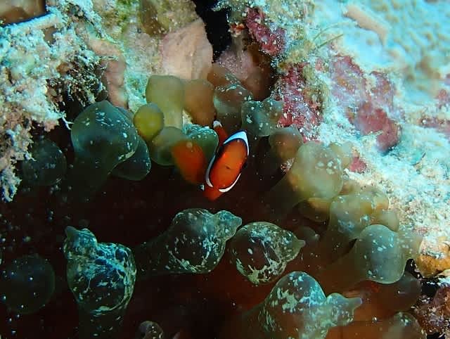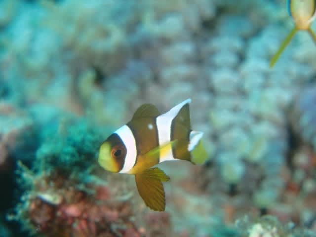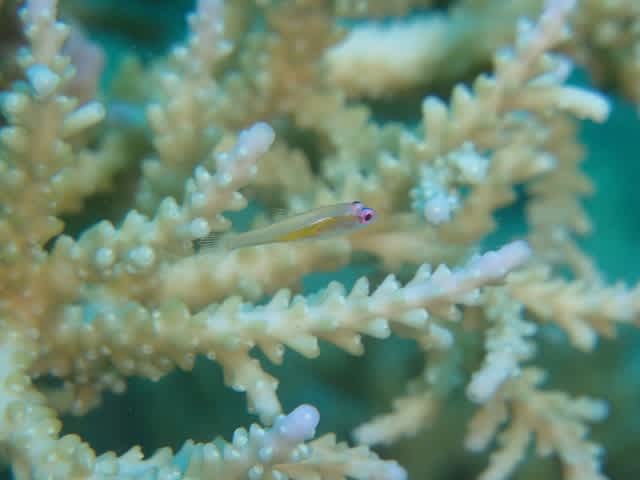 サンゴに、サンゴの周りに居る可愛い子ちゃん達を見ながら、アカククリ