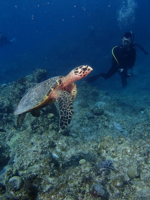 眠たそうにしているカメや、久しぶりに色鮮やかなハナダイを見に行ったりで、