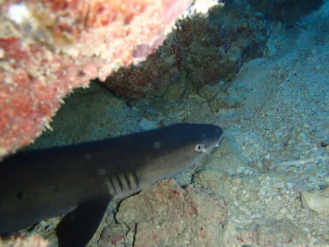 一本目には、可愛いらしいホワイトチップの子供が岩陰で寝てたり