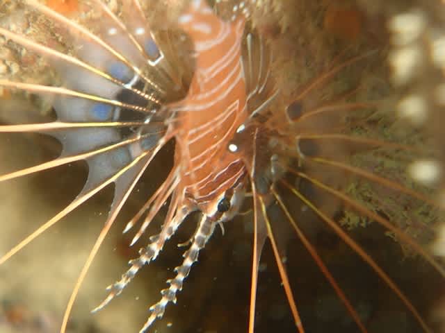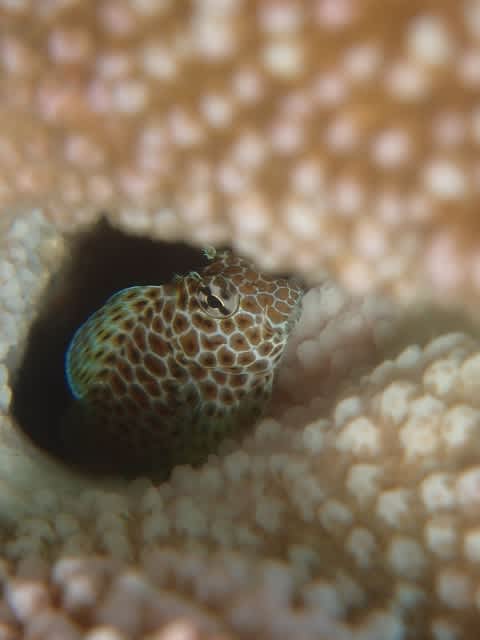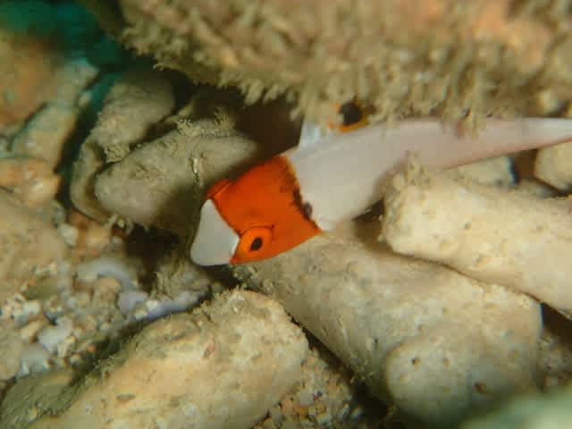 居たり、サンゴを覗けば久しぶりに見たっセダカギンポの幼魚