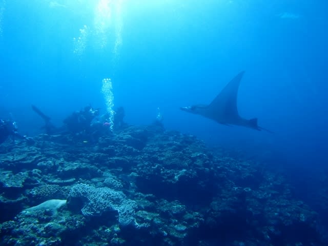 ましたが遠くの方から1枚のマンタが僕らが待つ根の目の前まで