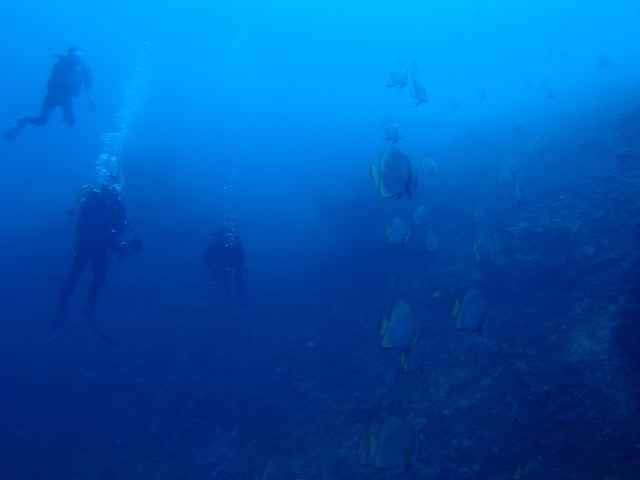 ちらっとマンタが遠くに見える! いやいやこっちに近づいてくる!!