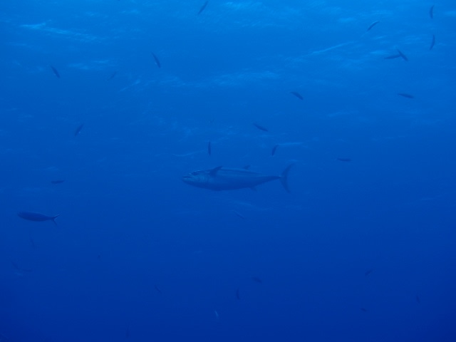 マグロがちょろり登場と遠くの方にマダラトビエイもいましたよ♪