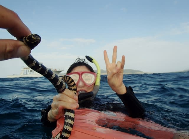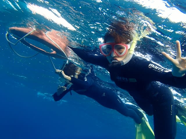 スノーケルではお魚捕まえようと素潜りでがんばってきました