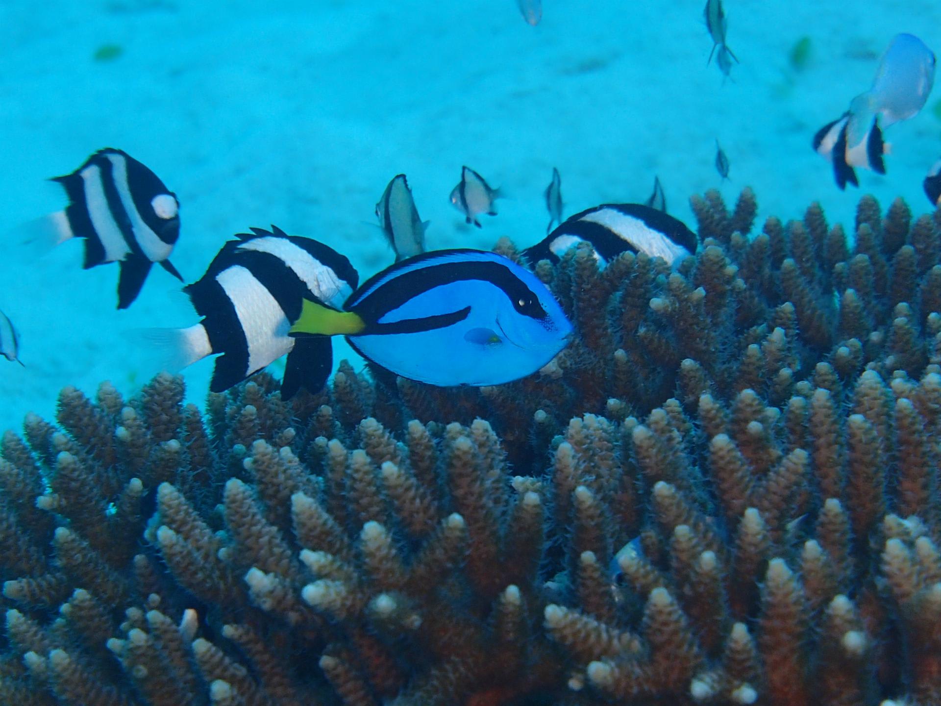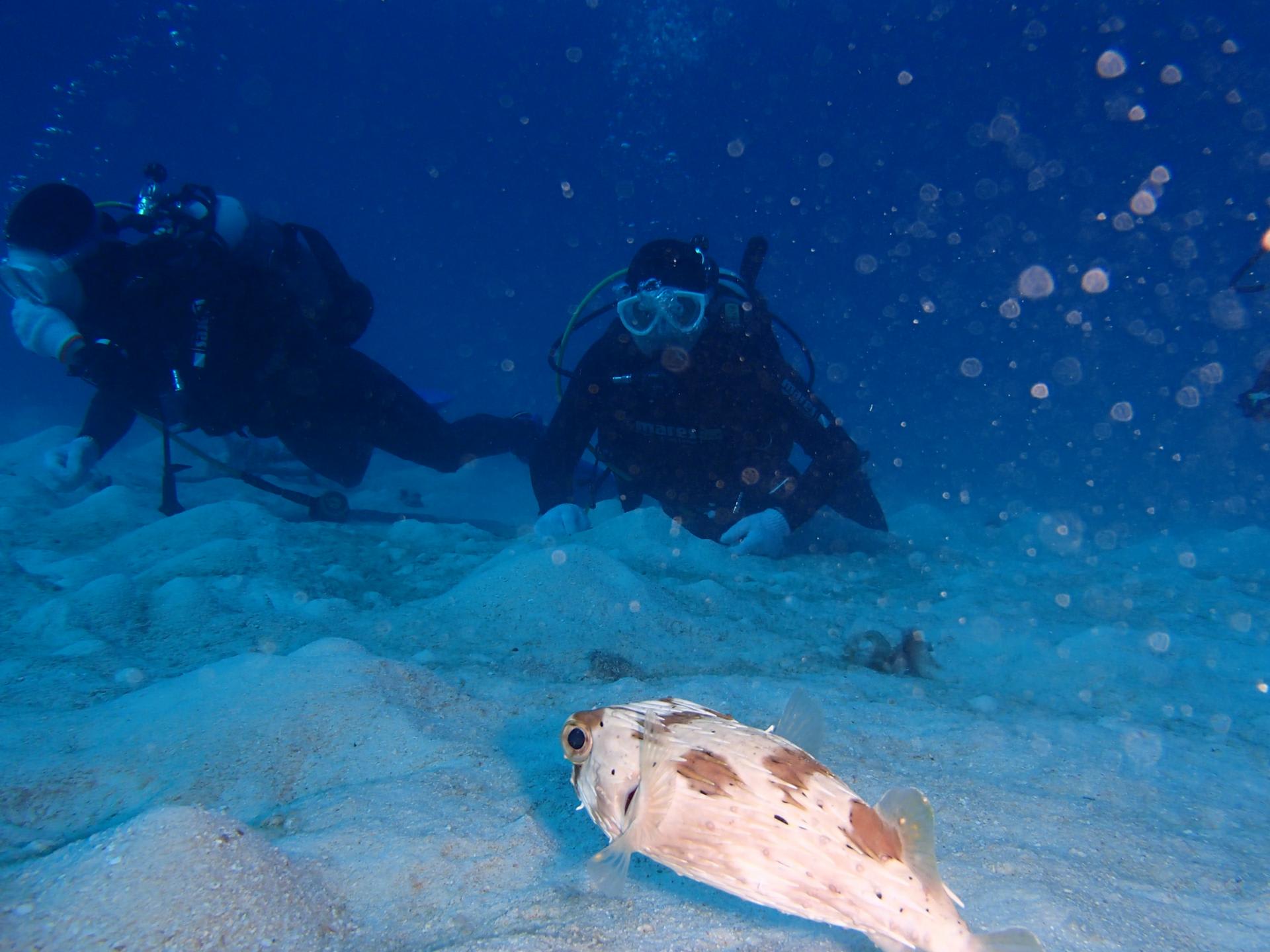 コンディション北東の風 気温17℃ 水温24~26℃ 透明度15~20m