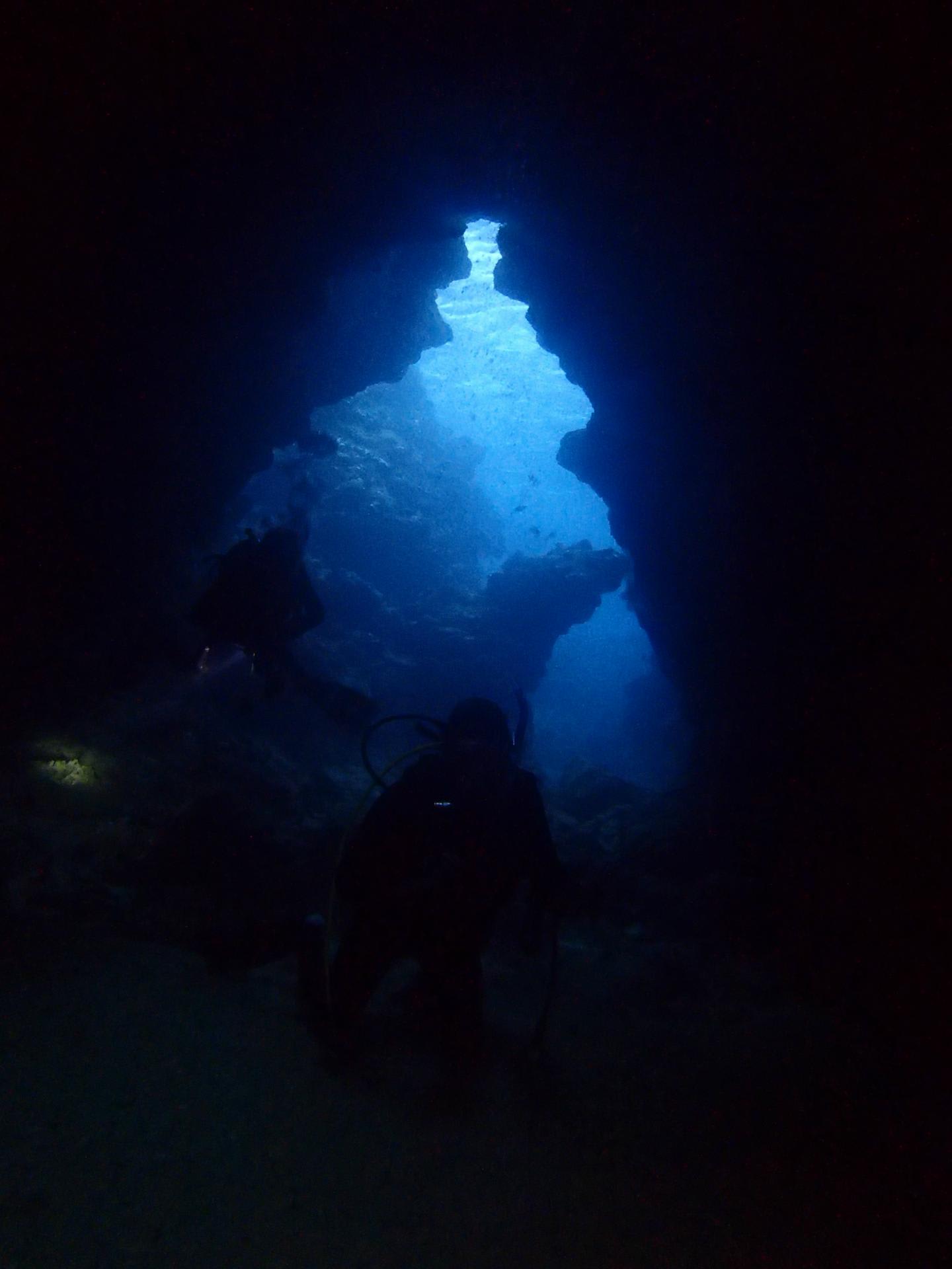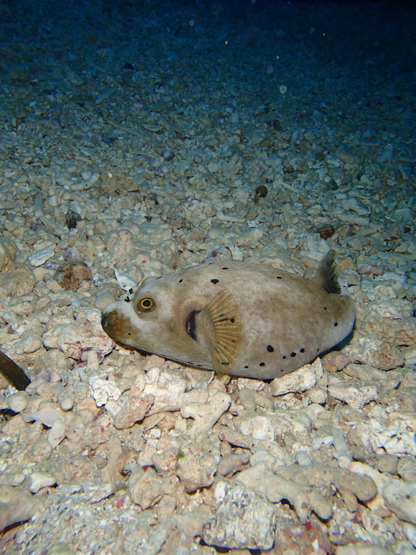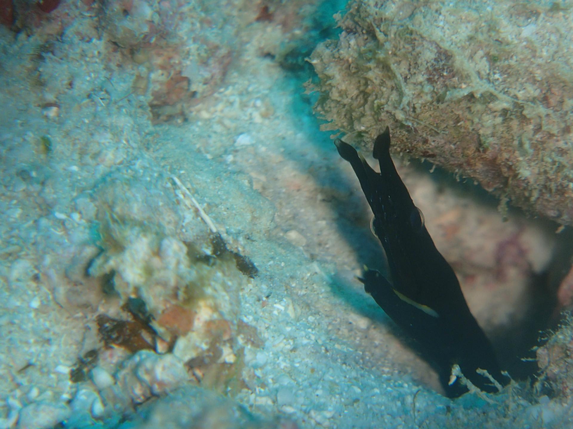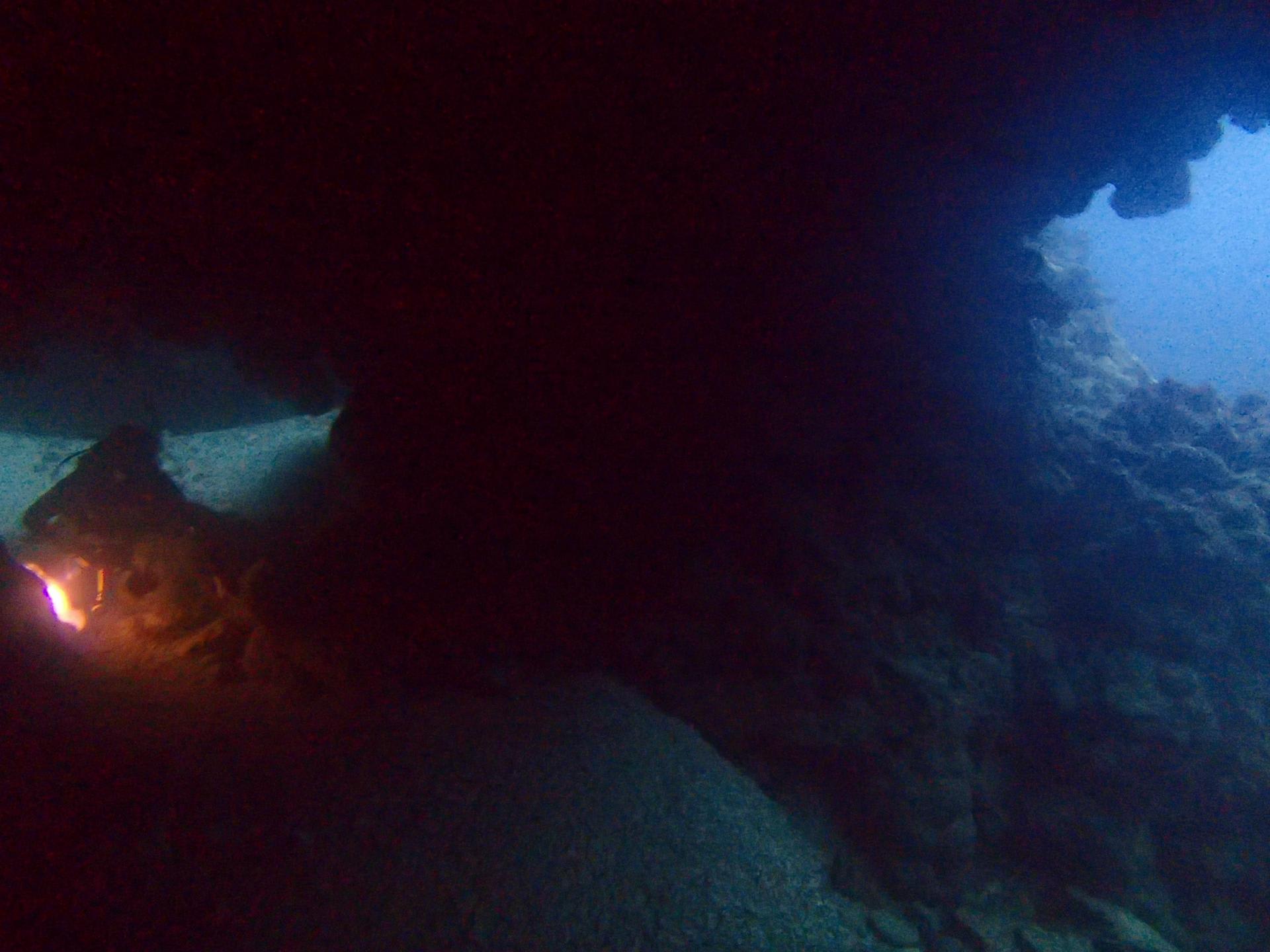 寒さのせいなのか 洞窟の中でフグがぼーっと寝てました