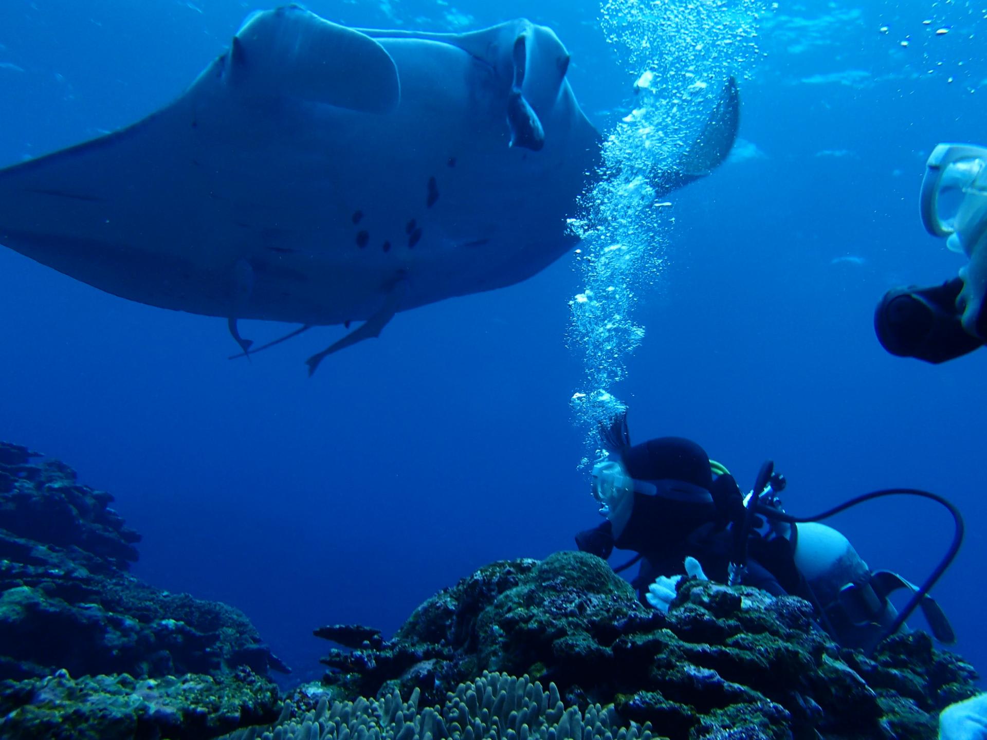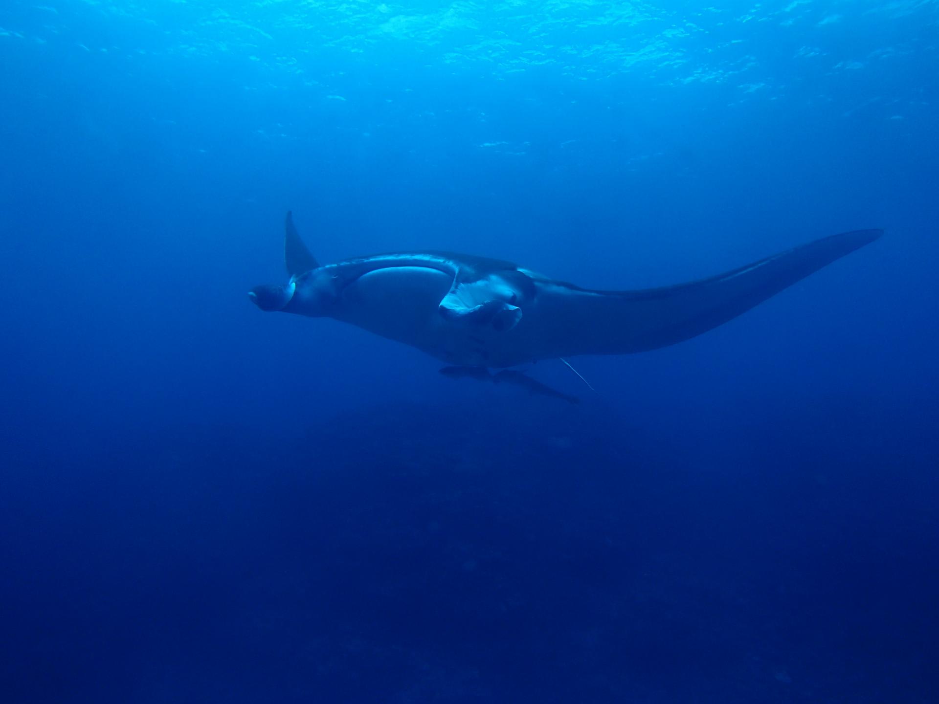 まだ小さい子マンタと大きなマンタ計3~4枚が