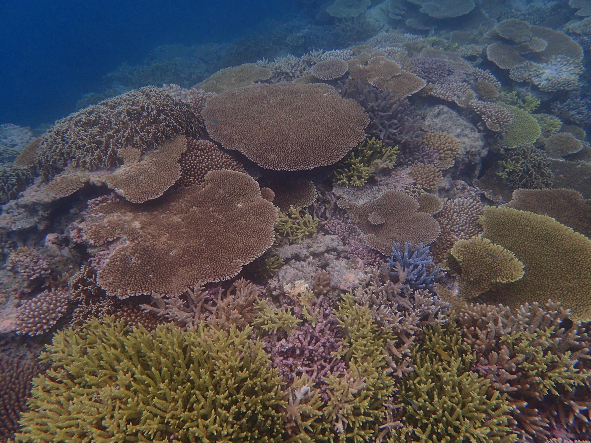 リーフの上のテーブルサンゴはいつみてもピカイチで