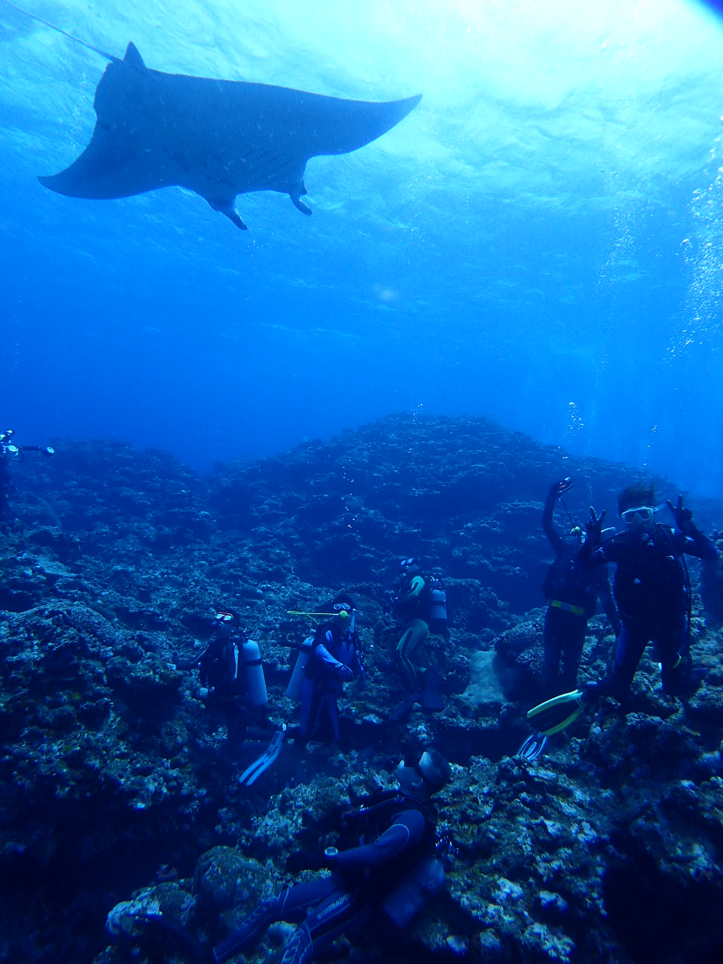 小さめのマンタがあっちへこっちへ行ったり仲良く列組んだりでした