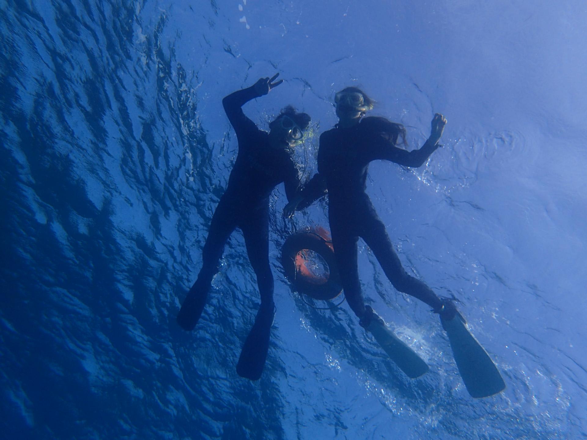 最初はスノーケルを加えて顔をつけられなかった奥さまですが、