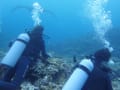 ご主人さまは、あれ?初めてのダイビングなのにスイスイーとあっさり潜降。