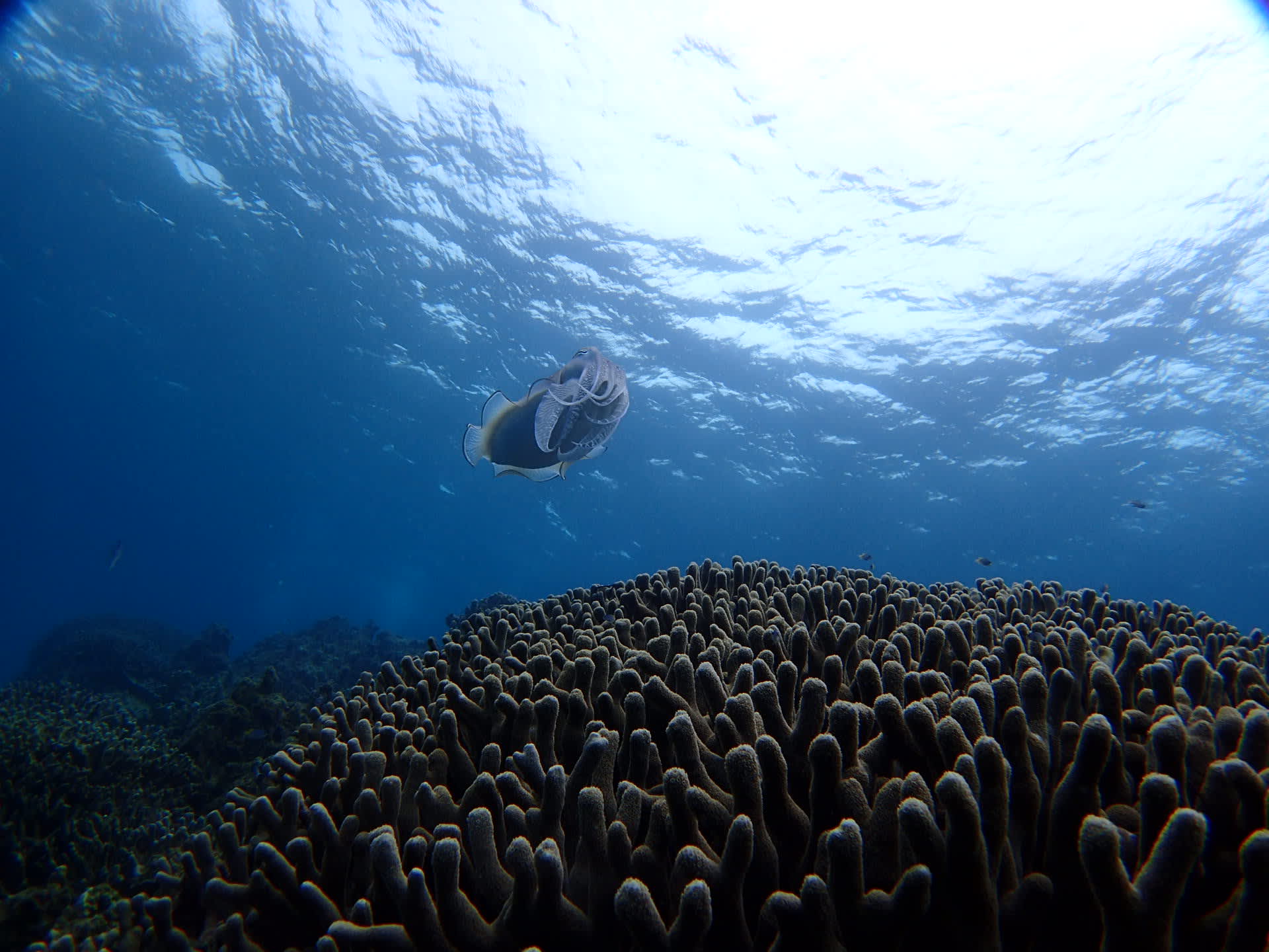 カメさんも。コブシメも3匹じーっとしていて