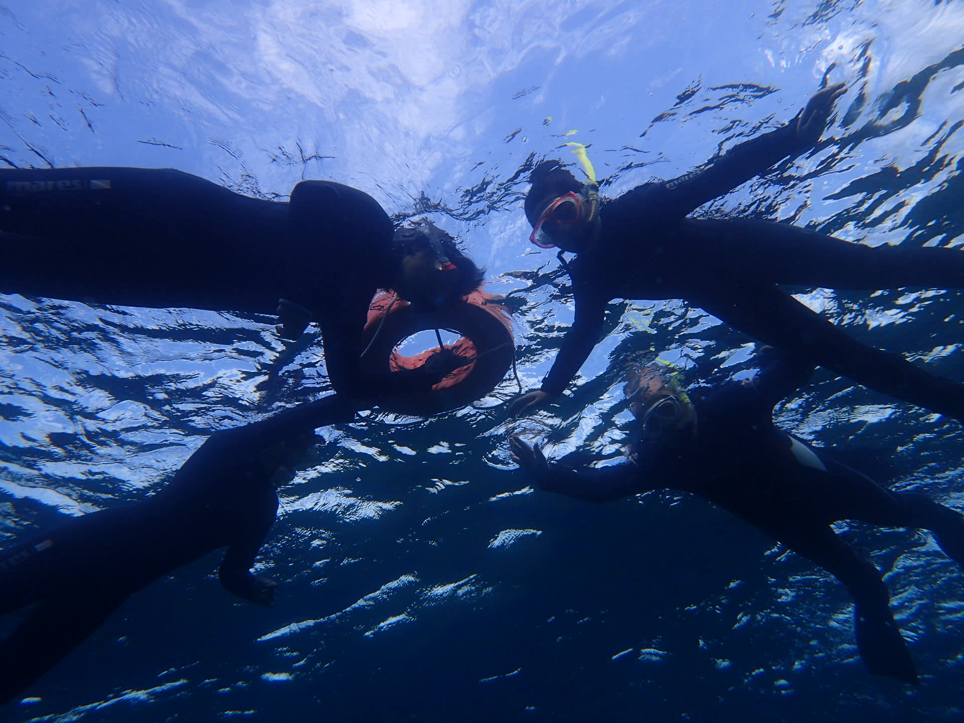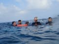 休憩時間はオガンに船を寄せて、体験ダイビングや