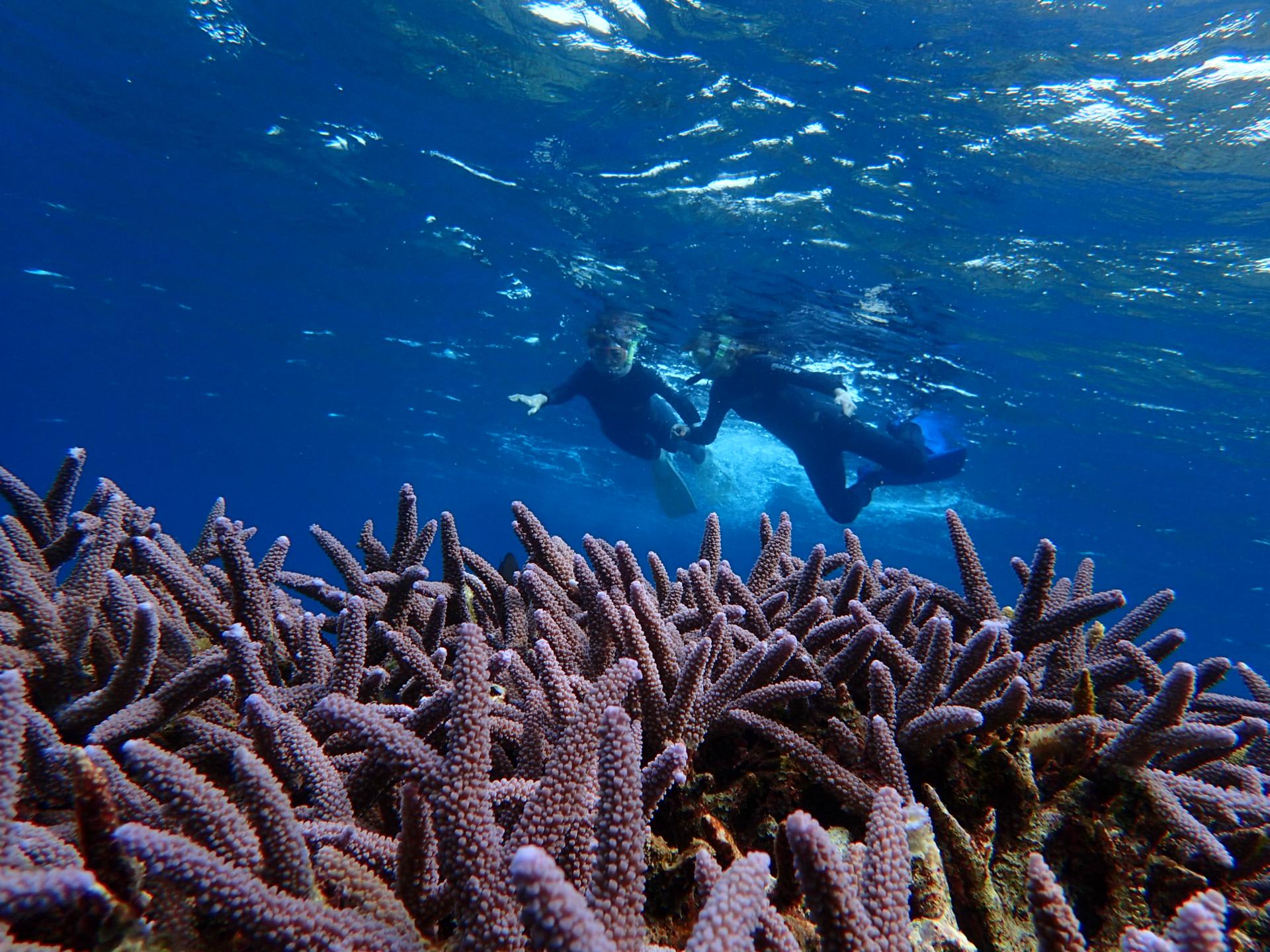 櫛状に沖へ張り出している根を横切りながら泳ぐんですが