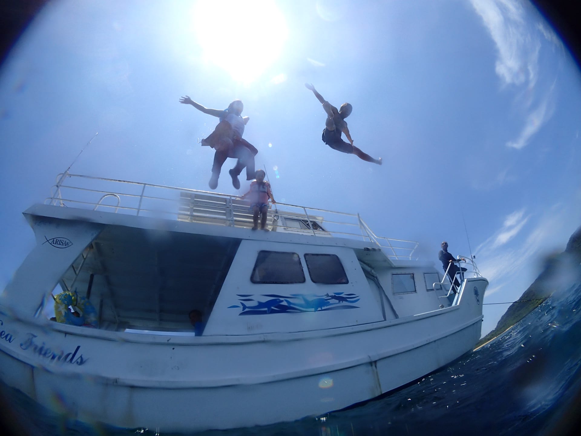 飛び込みにスノーケルに釣りにと大騒ぎでした