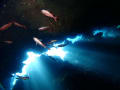 朝の日光浴なのかスズメダイたちも水面近くまで上がり