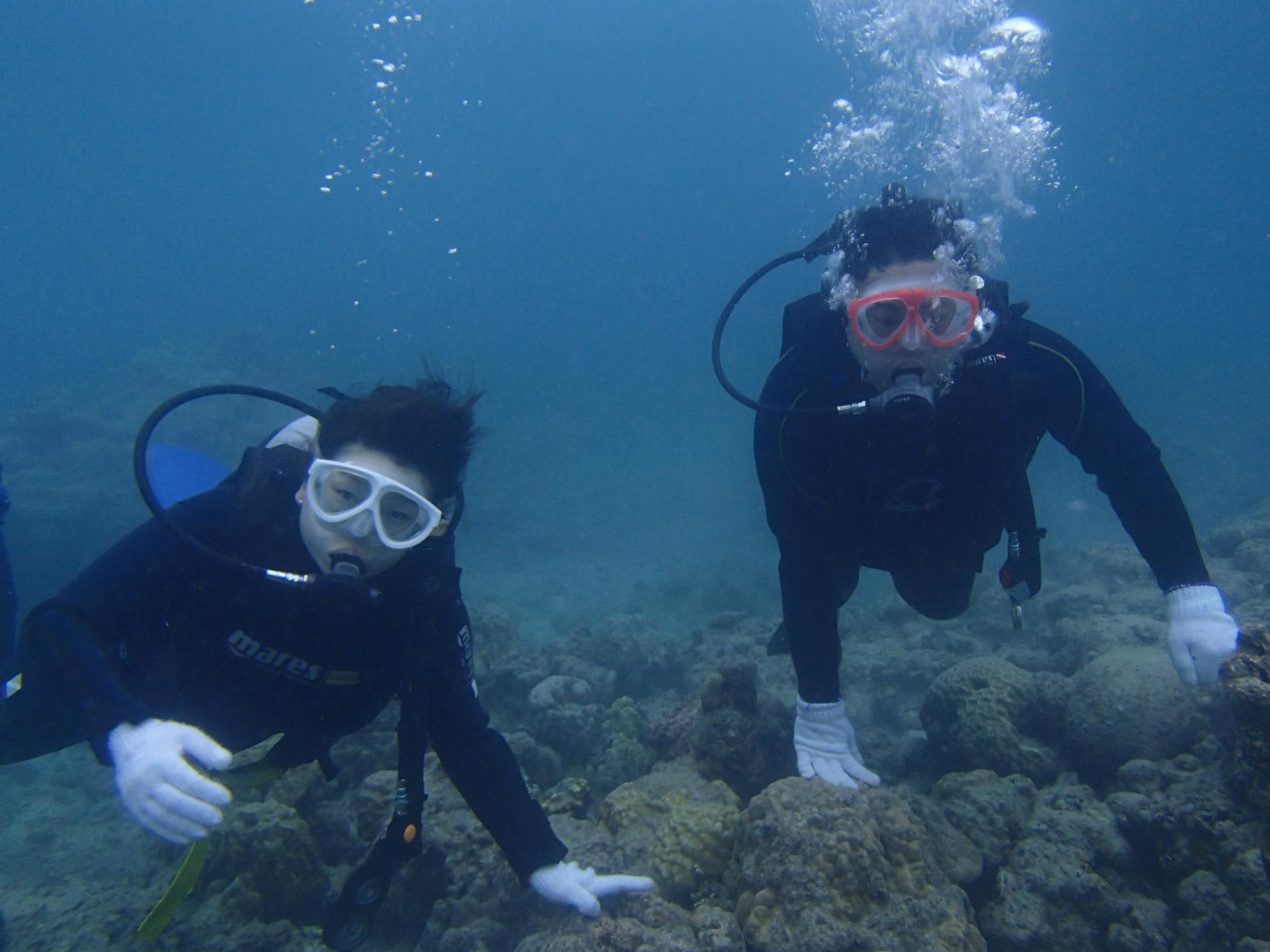 コンディション:南東のち北東の風 気温32℃ 水温29℃ 透明度15m