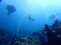 初めは1枚が素通りでしたが まっていると4枚のマンタが登場です★