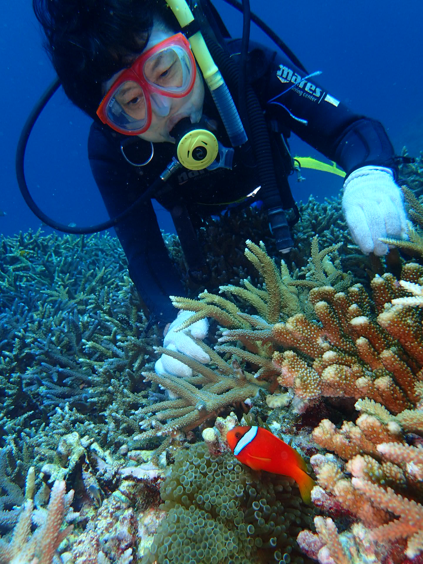 風も止み 三ツ石も静か~でしたので癒しのサンゴタイムです
