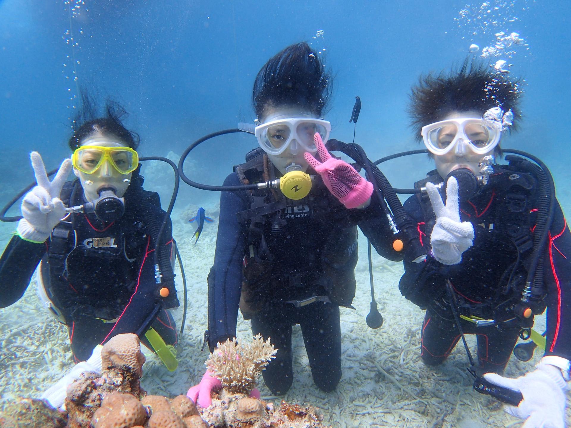 コンディション:曇り/晴れ 気温32℃ 水温28℃ 透明度15m~