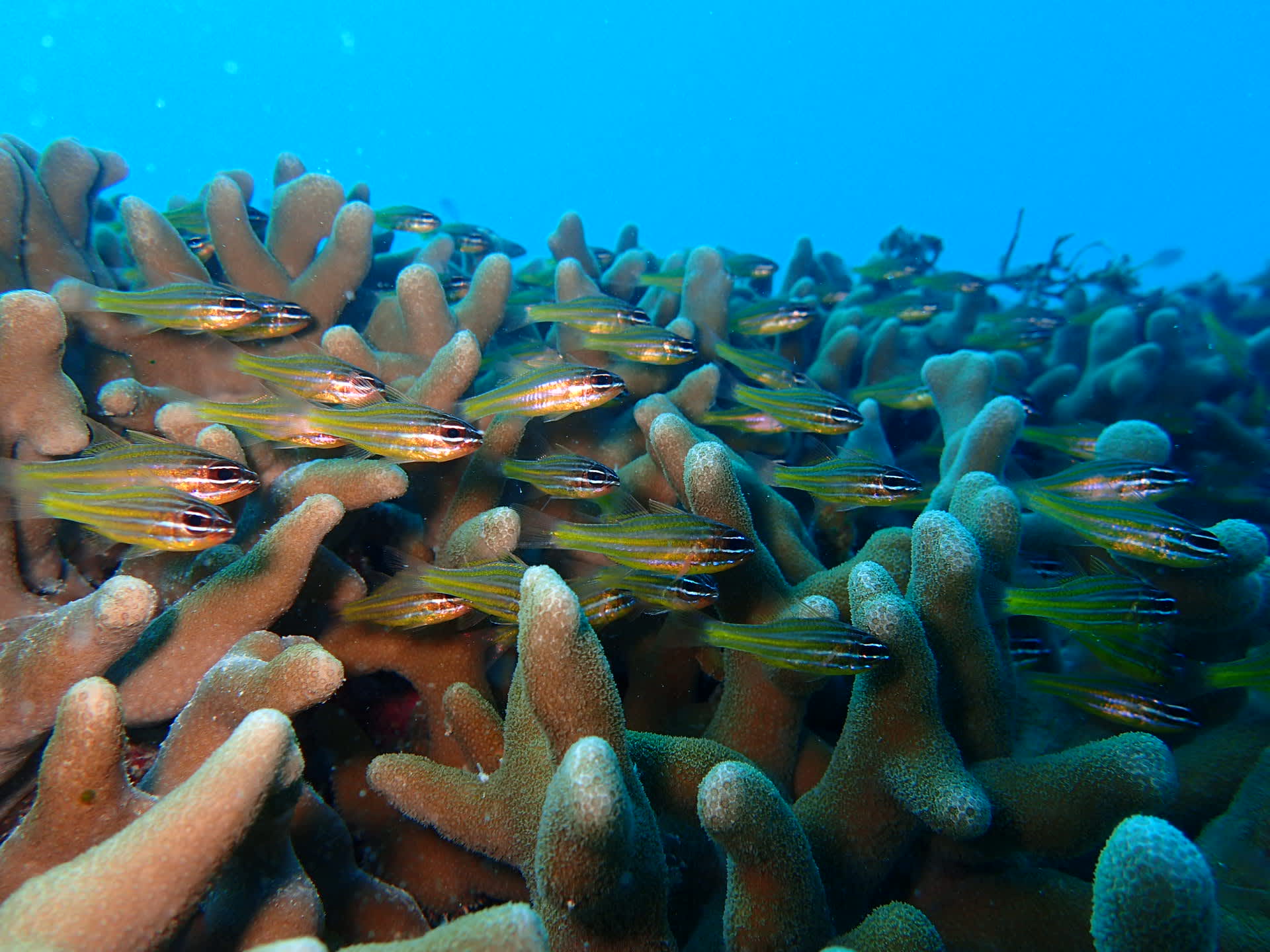 BIGなコモンシコロサンゴゾーンでイットウダイ ヨスジフエダイの群れで