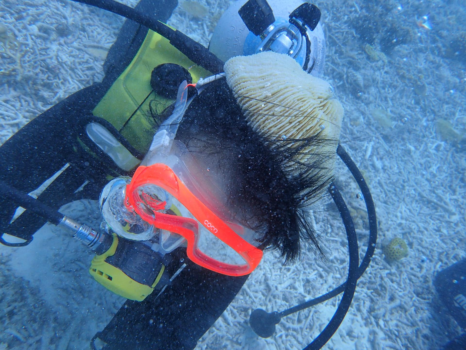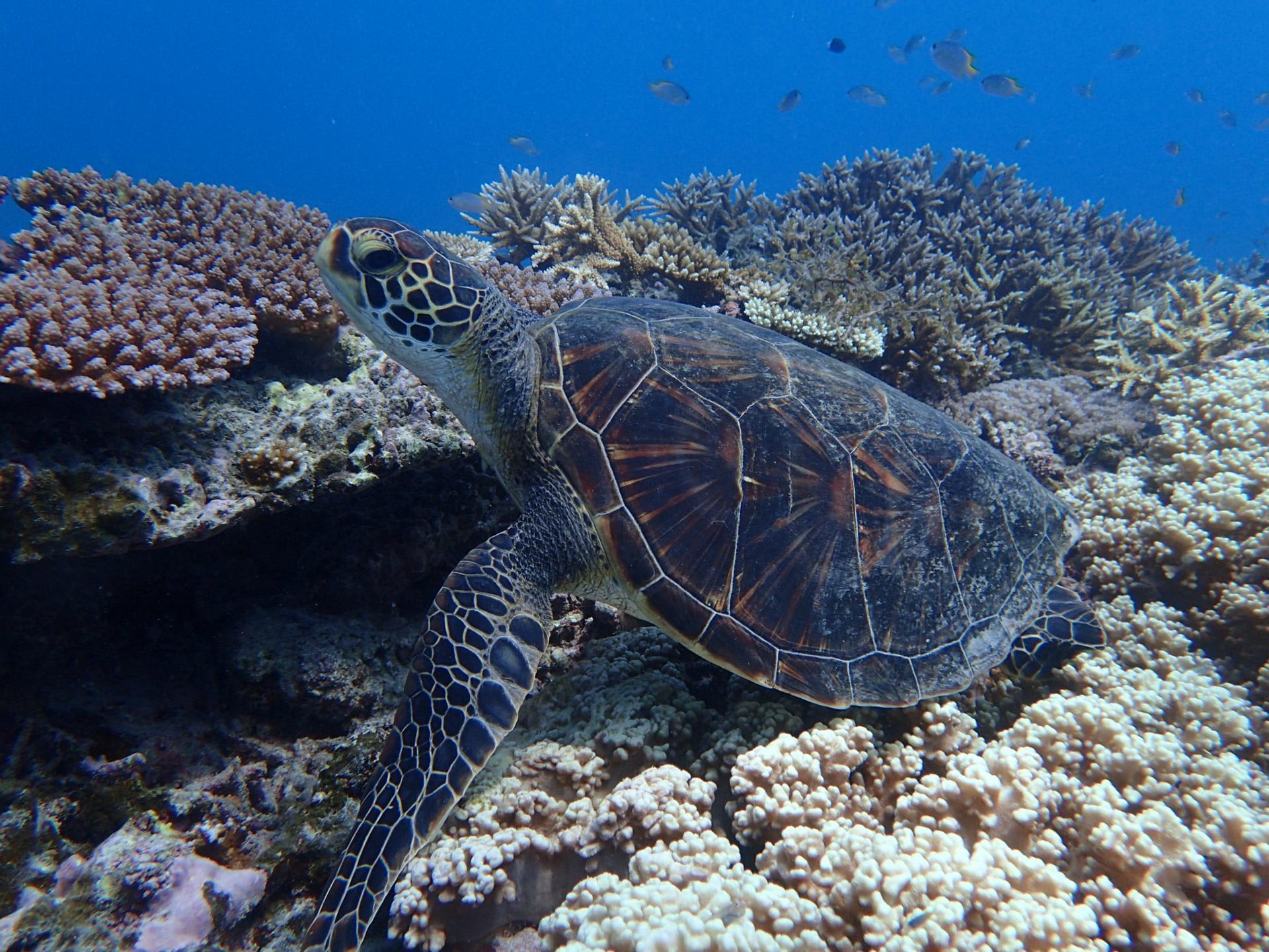 ラスト船下ではアオウミガメが昼寝中でしたので