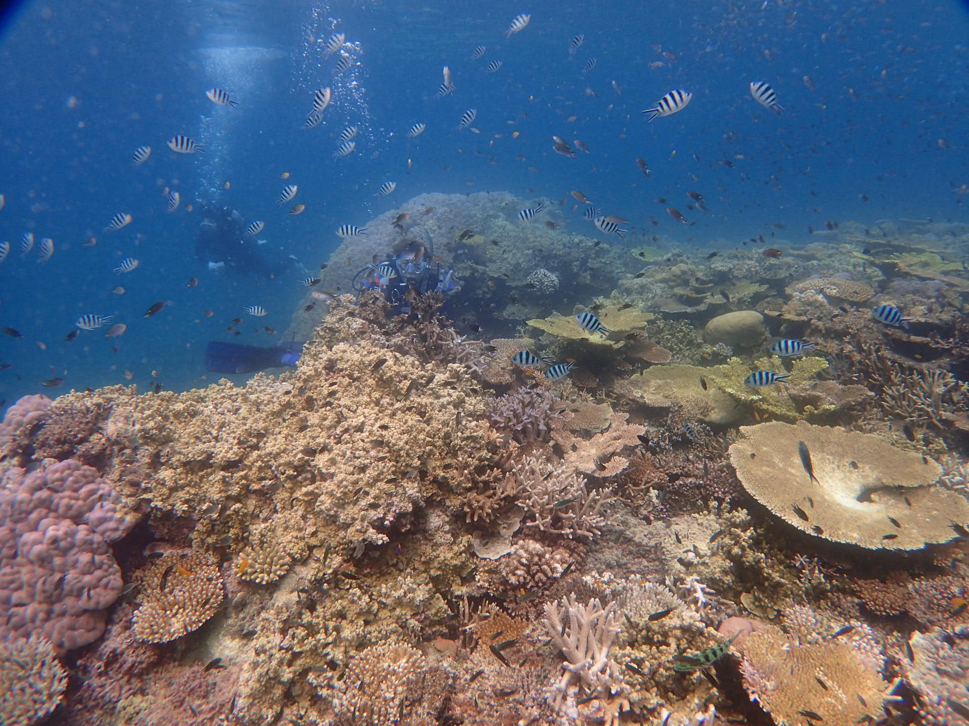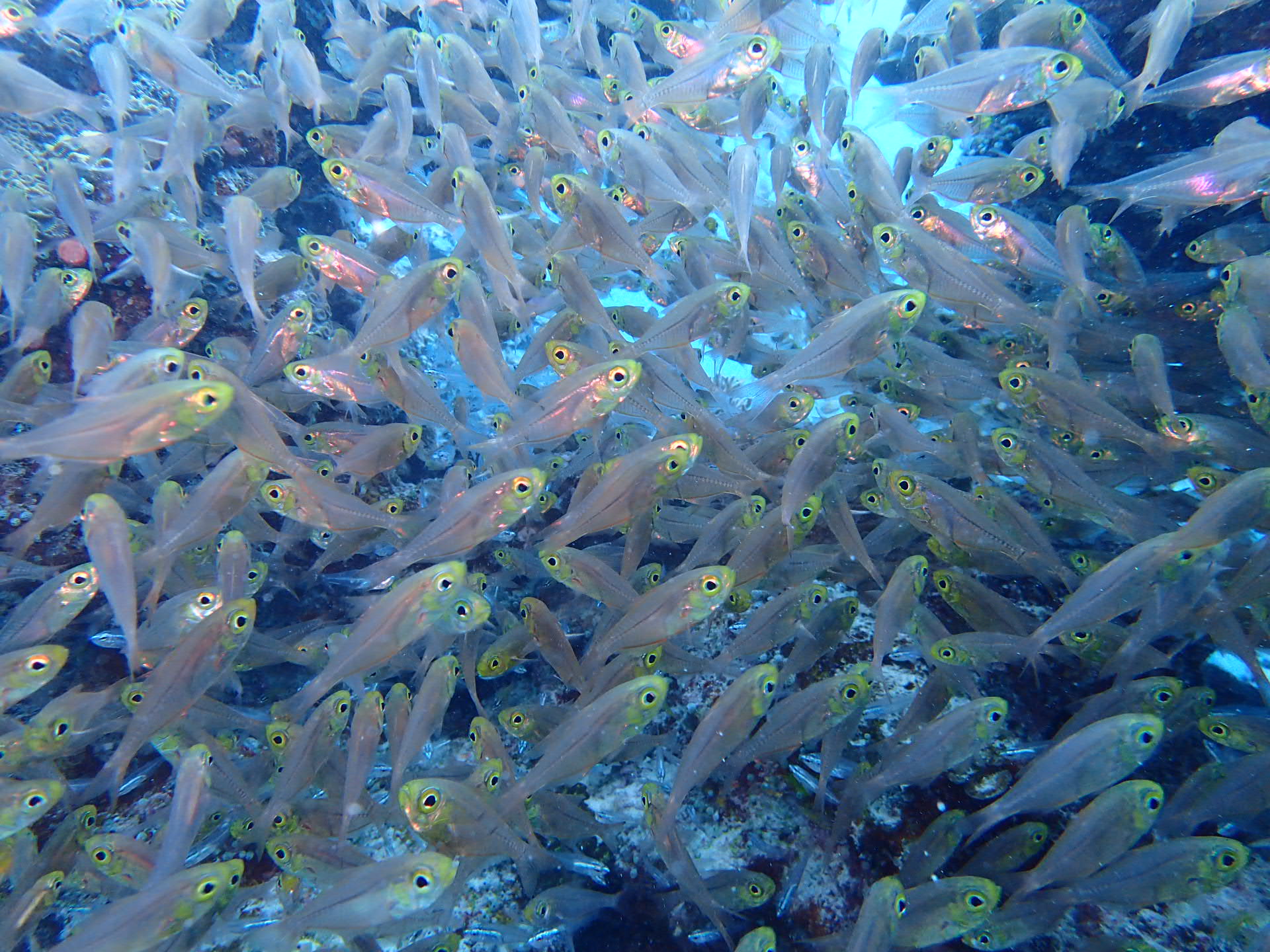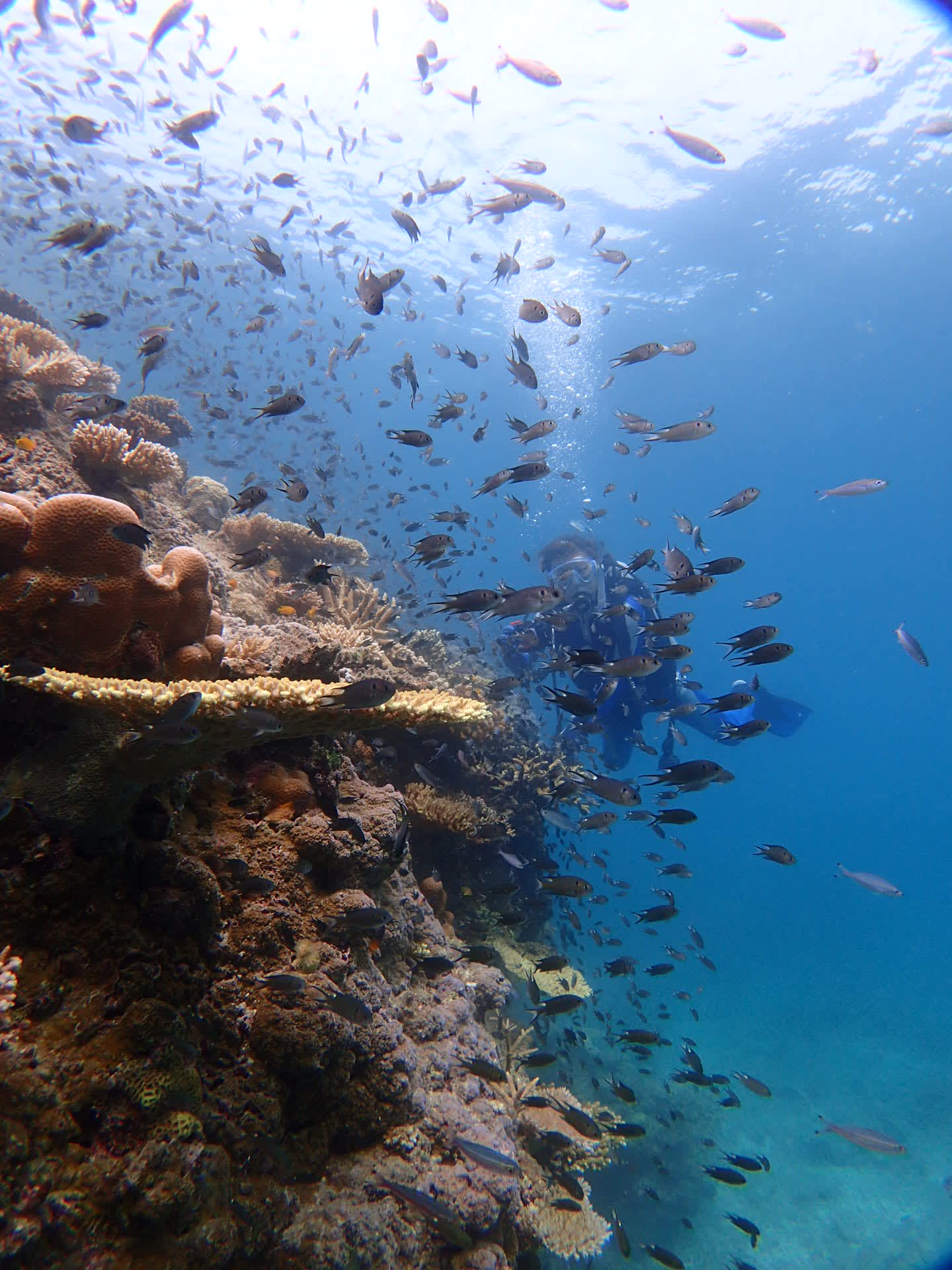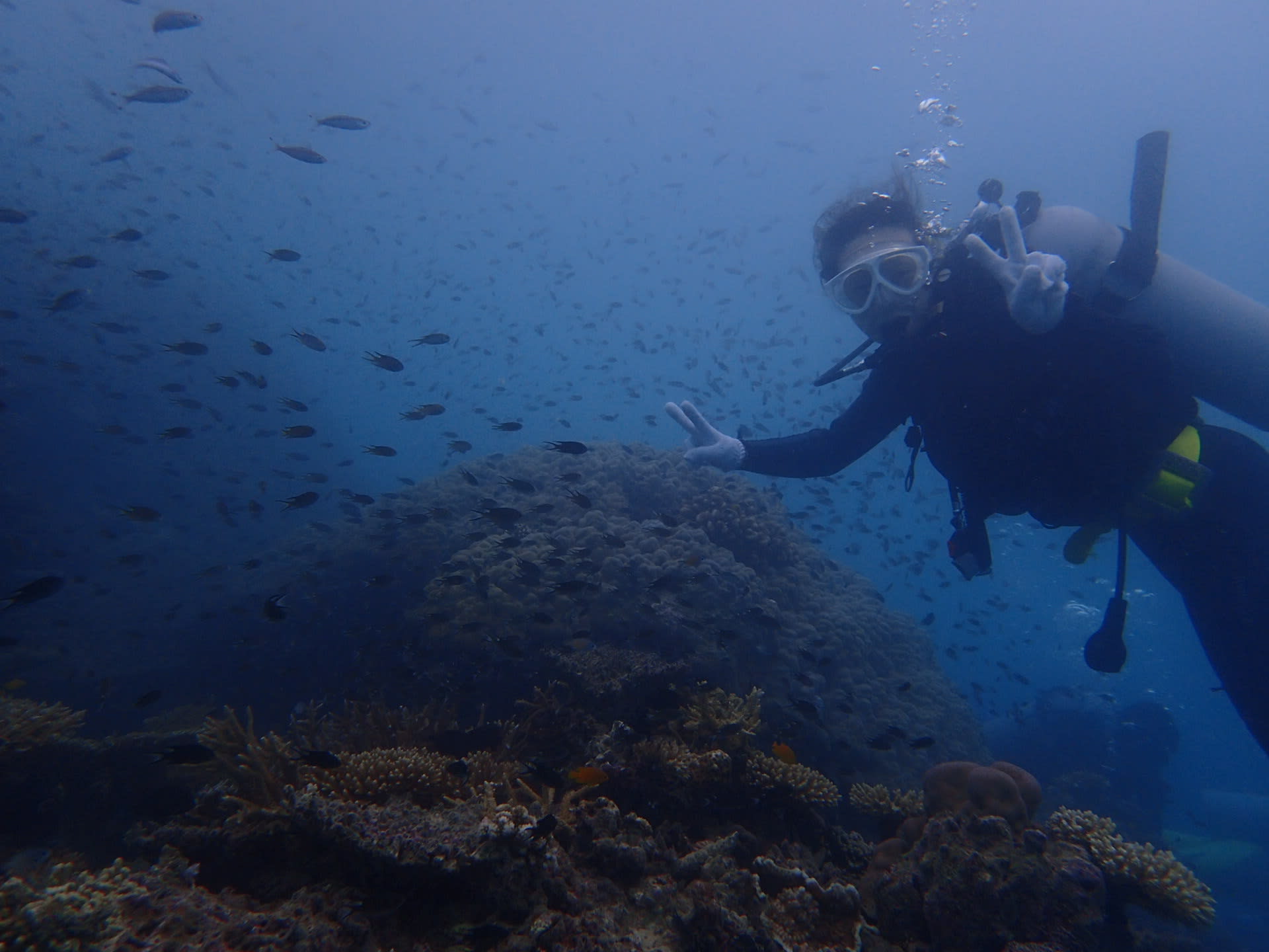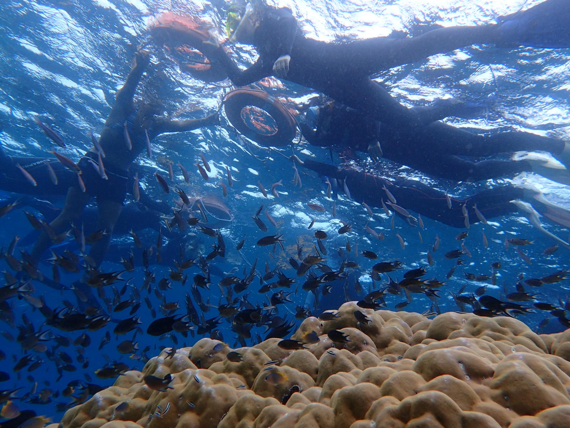 何千、いやいや何万匹もいるであろう、スズメダイやグルクン、テンジクダイに囲まれて、