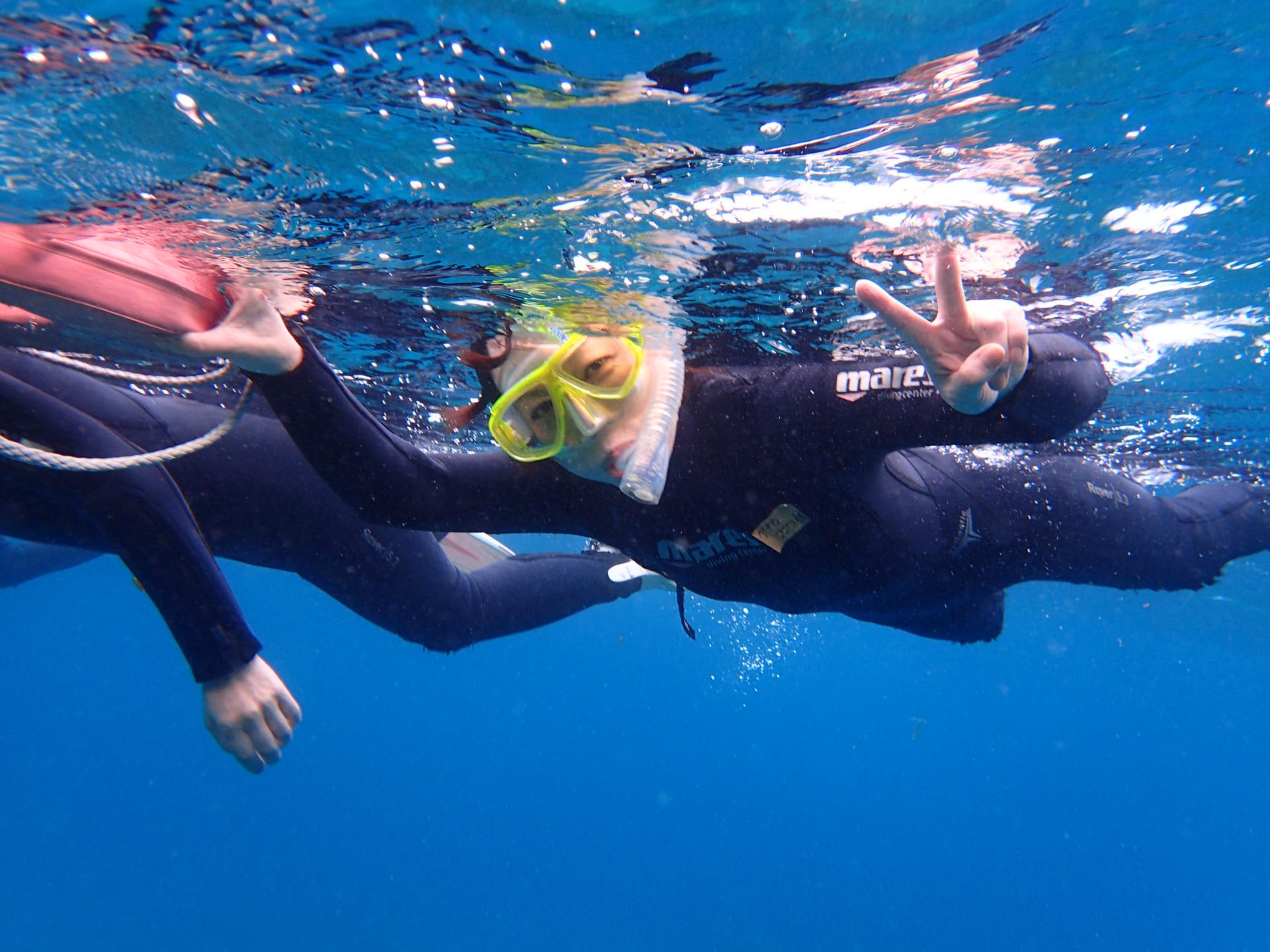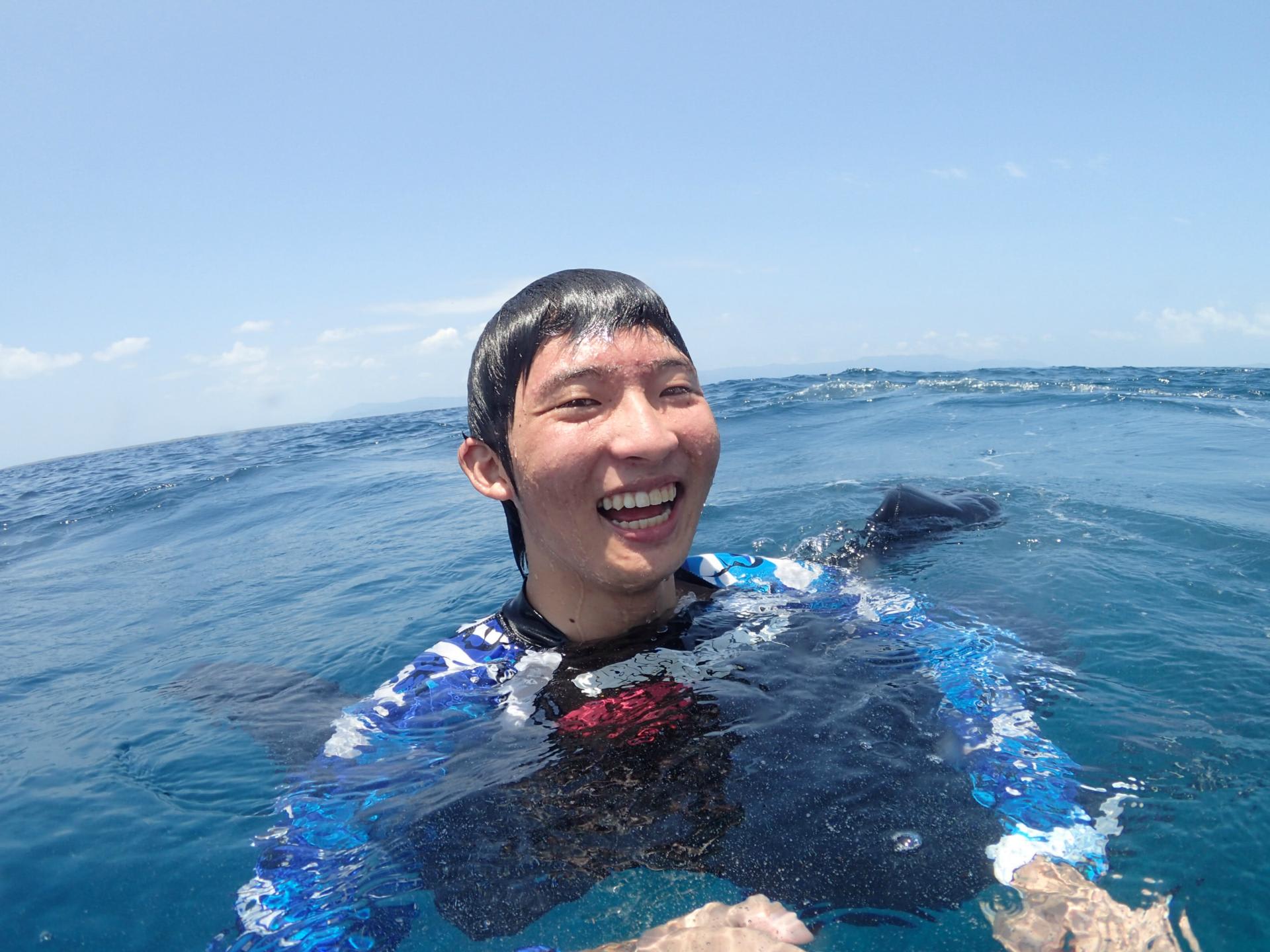 水面はパシャついていましたが、エントリーしてしまえば穏やかな海が広がっていまーす!!