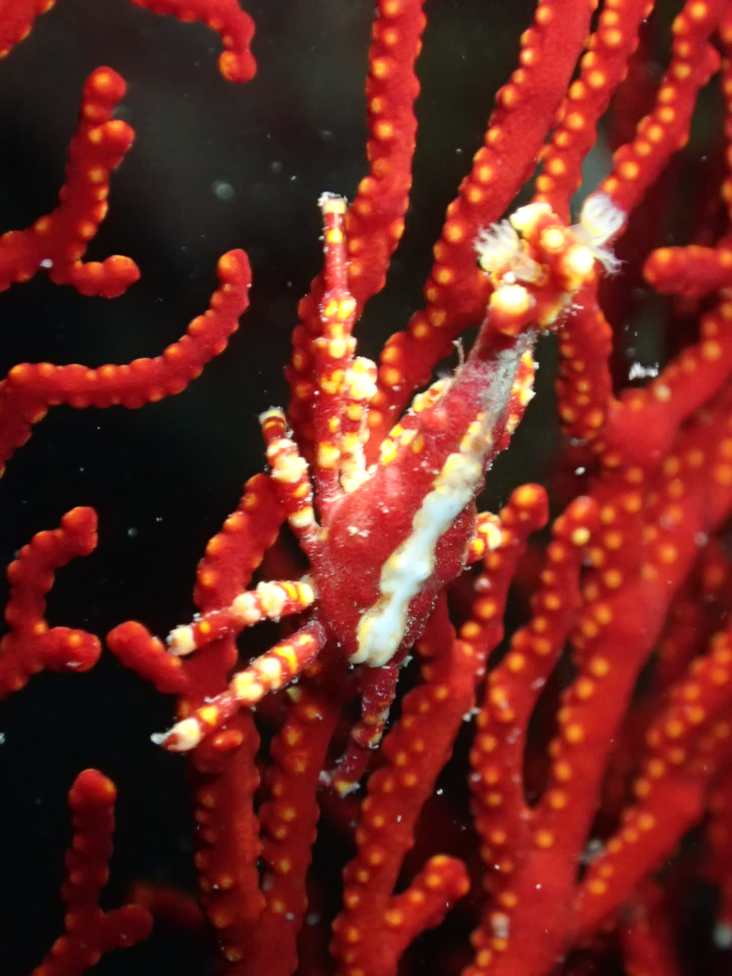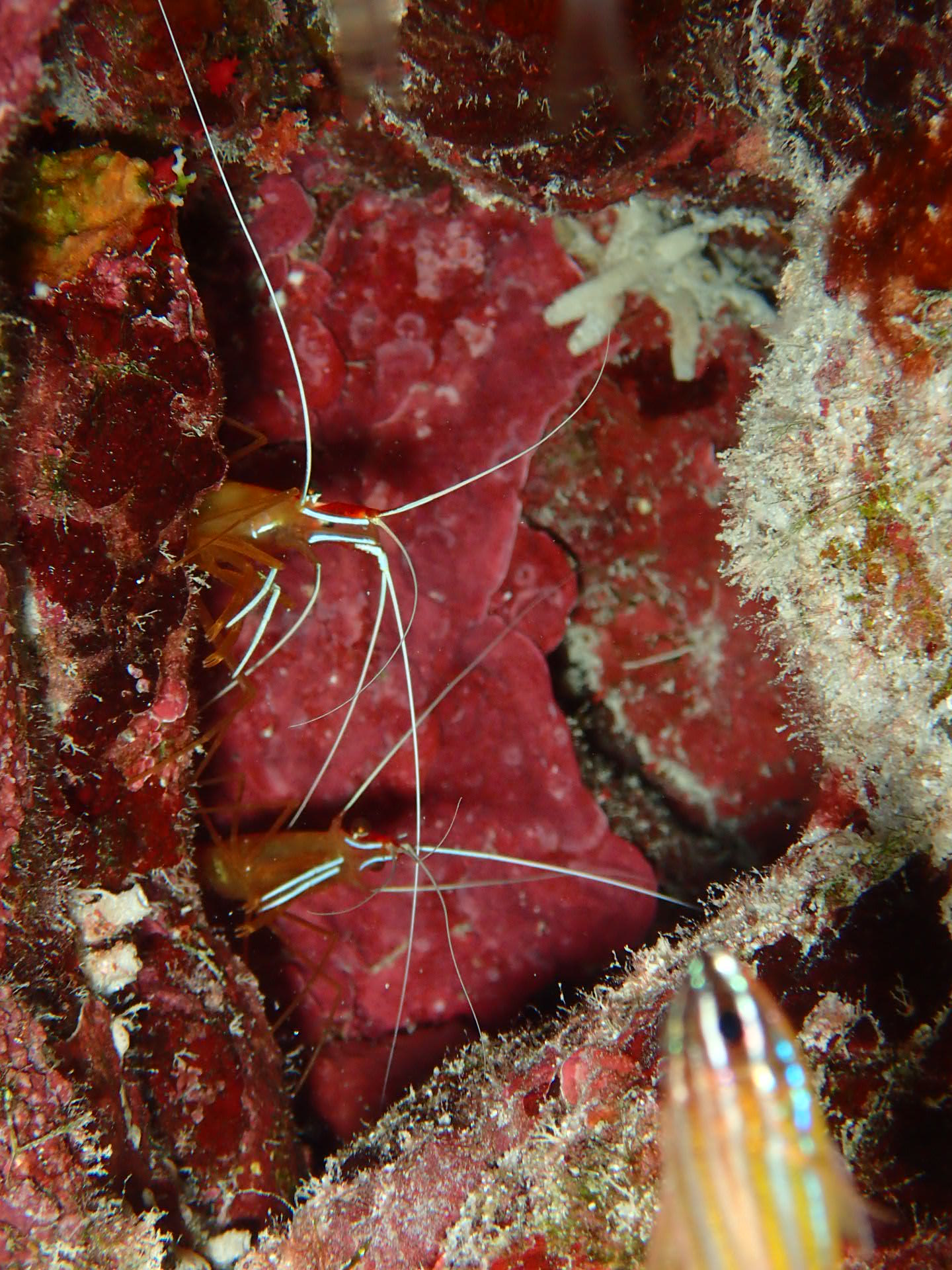 スカシテンジクダイの根ではアカシマシラヒゲエビのツインズが
