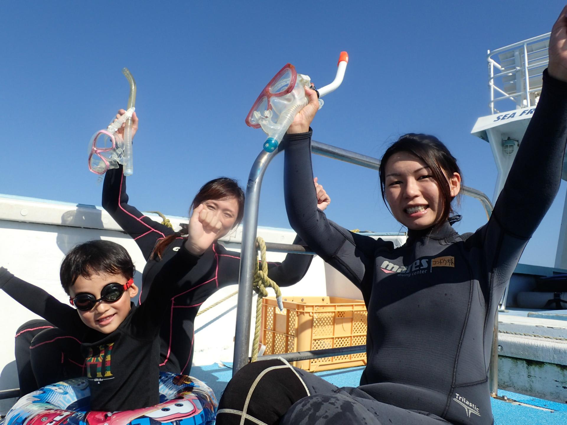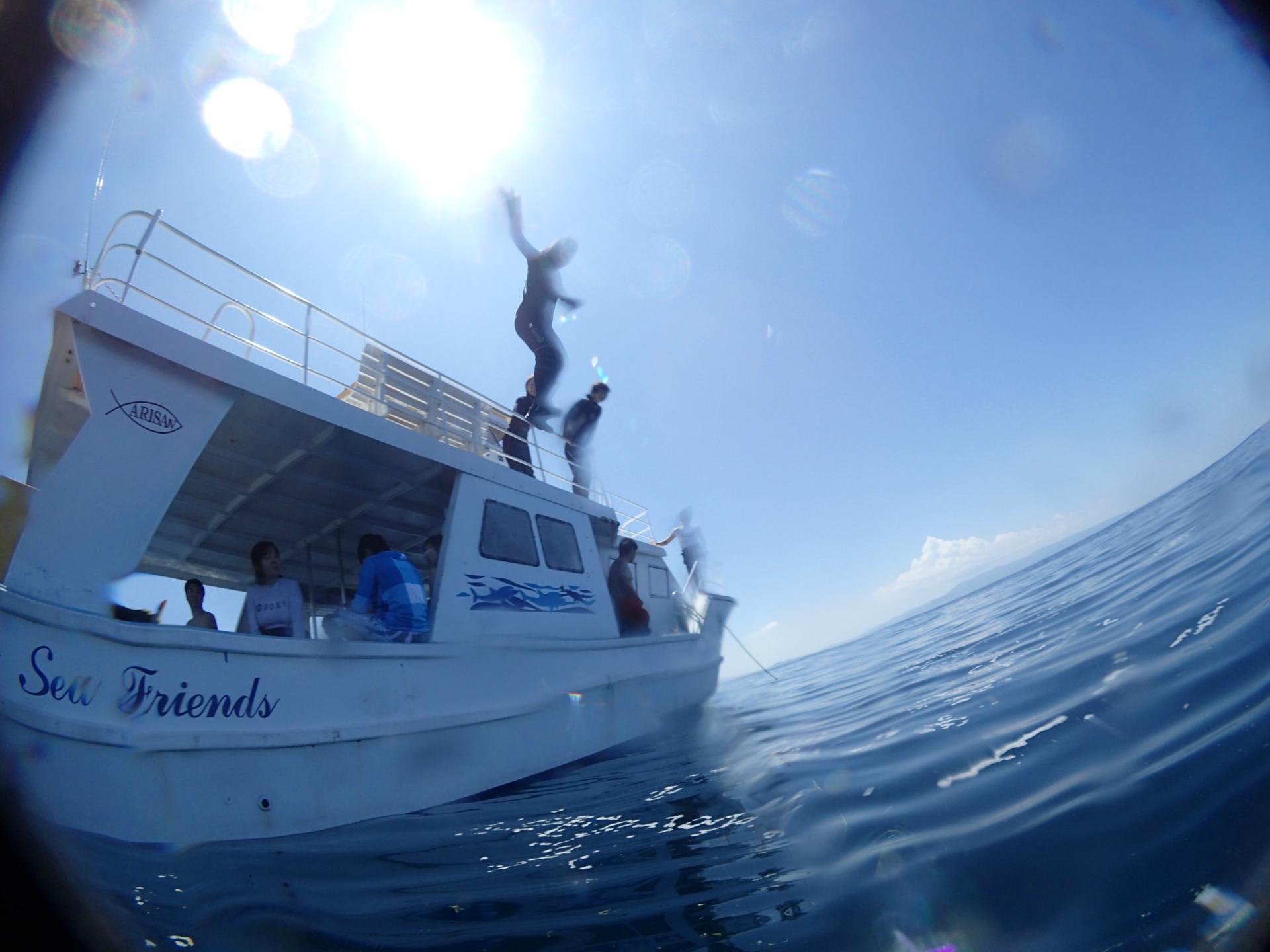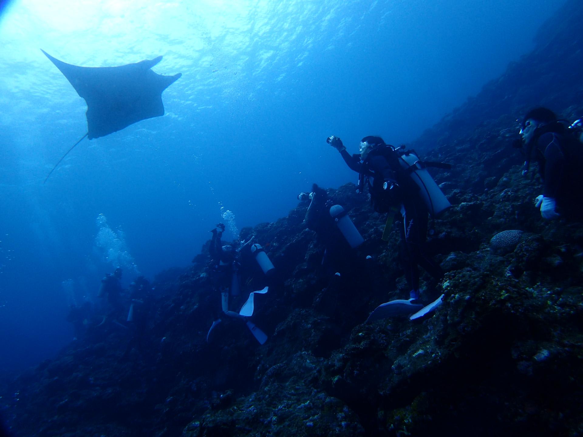 お昼休憩は飛び込み大会で遊んで、ラストはお待ちかねのマンタ様に会いに