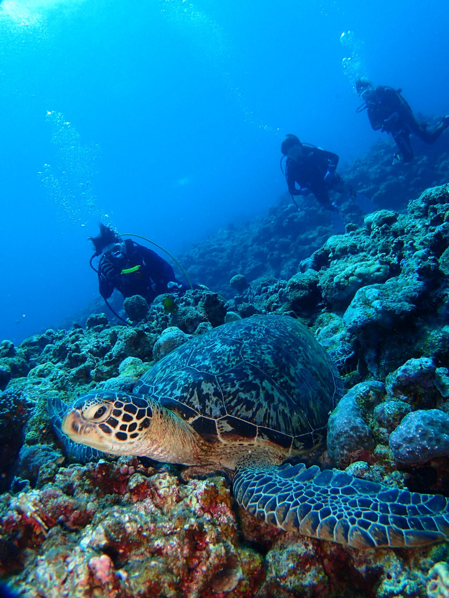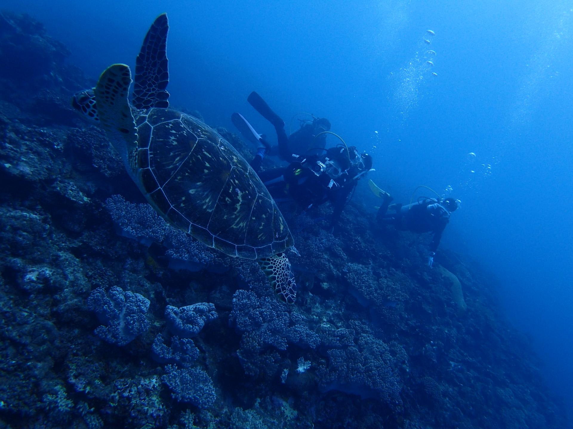 吸い込まれそうなブルーに包まれながら、アオウミガメさんが登場!!