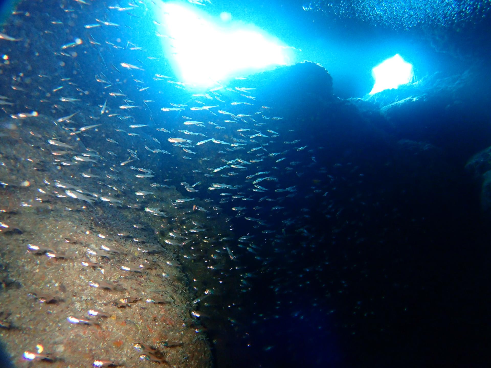 1本目は御神崎にてカメさんと遊んだり、穴の中でぶつかりそうな位に群れる
