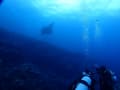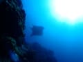 カメの寝床に行く間に マダラトビエイがシューーーっと登場