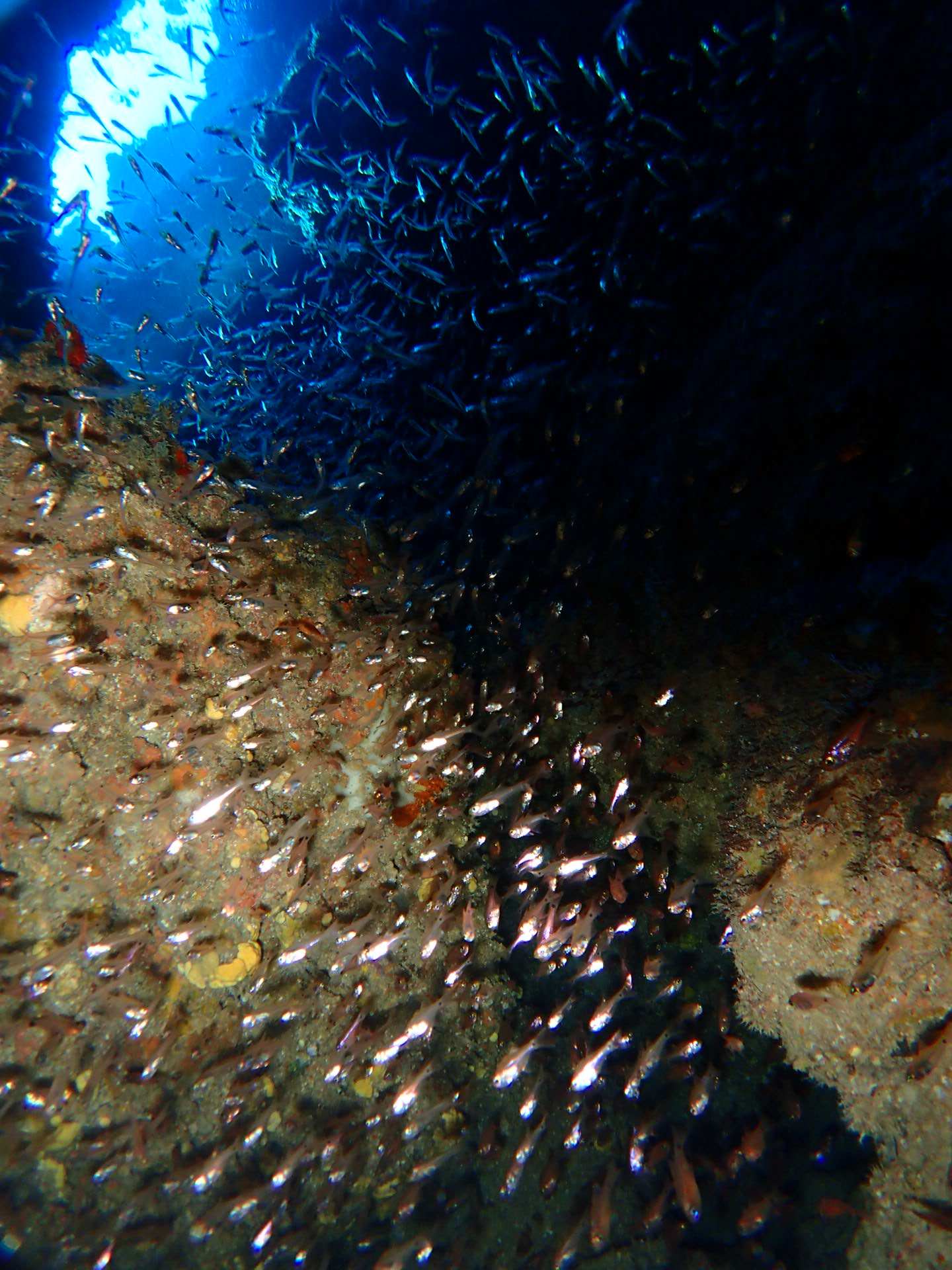 テンジクダイ系やキンメ系がどっさり群れてましたよ