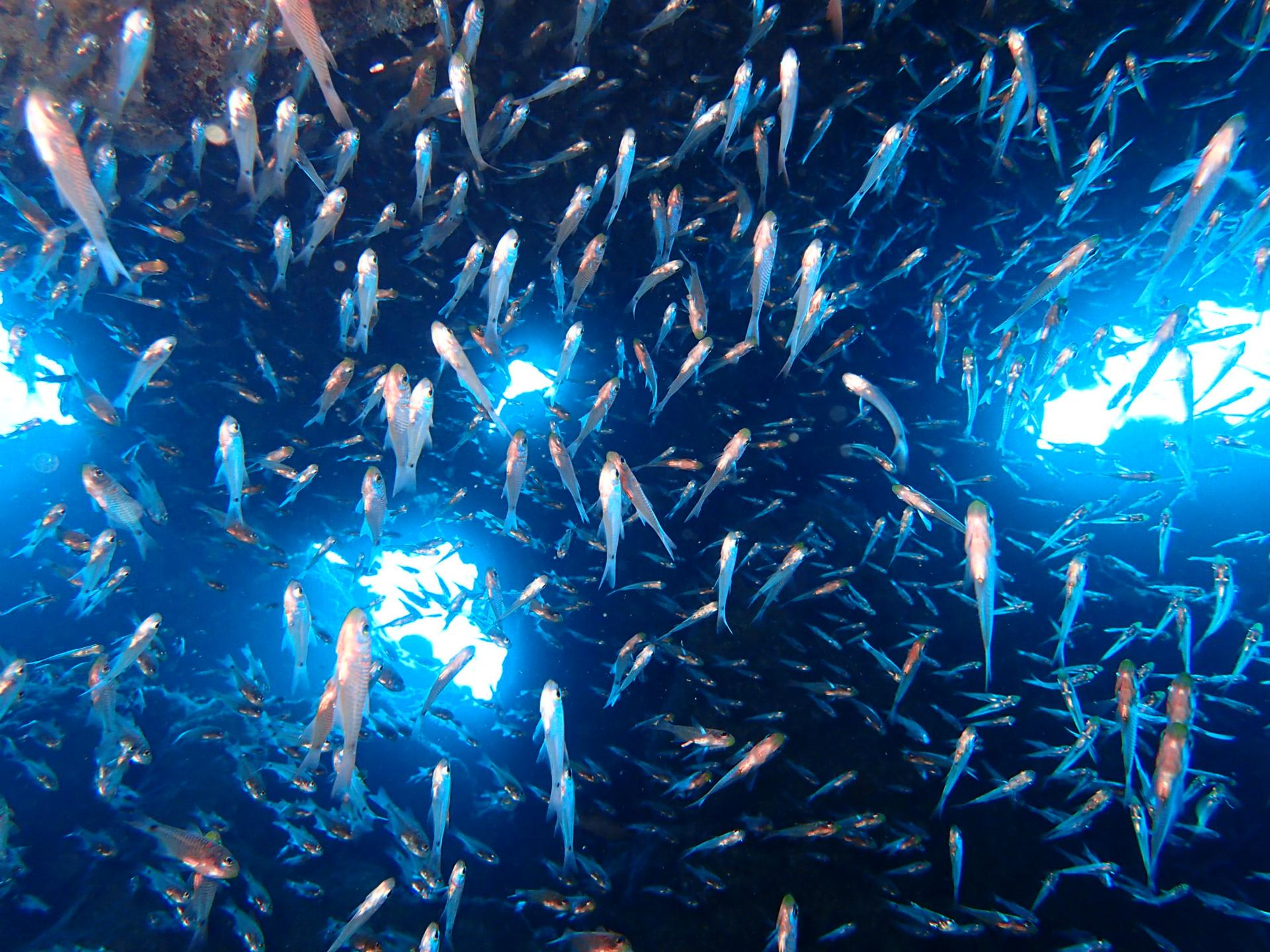 穴の方にはハタンポ テンジクダイ系がむれていて