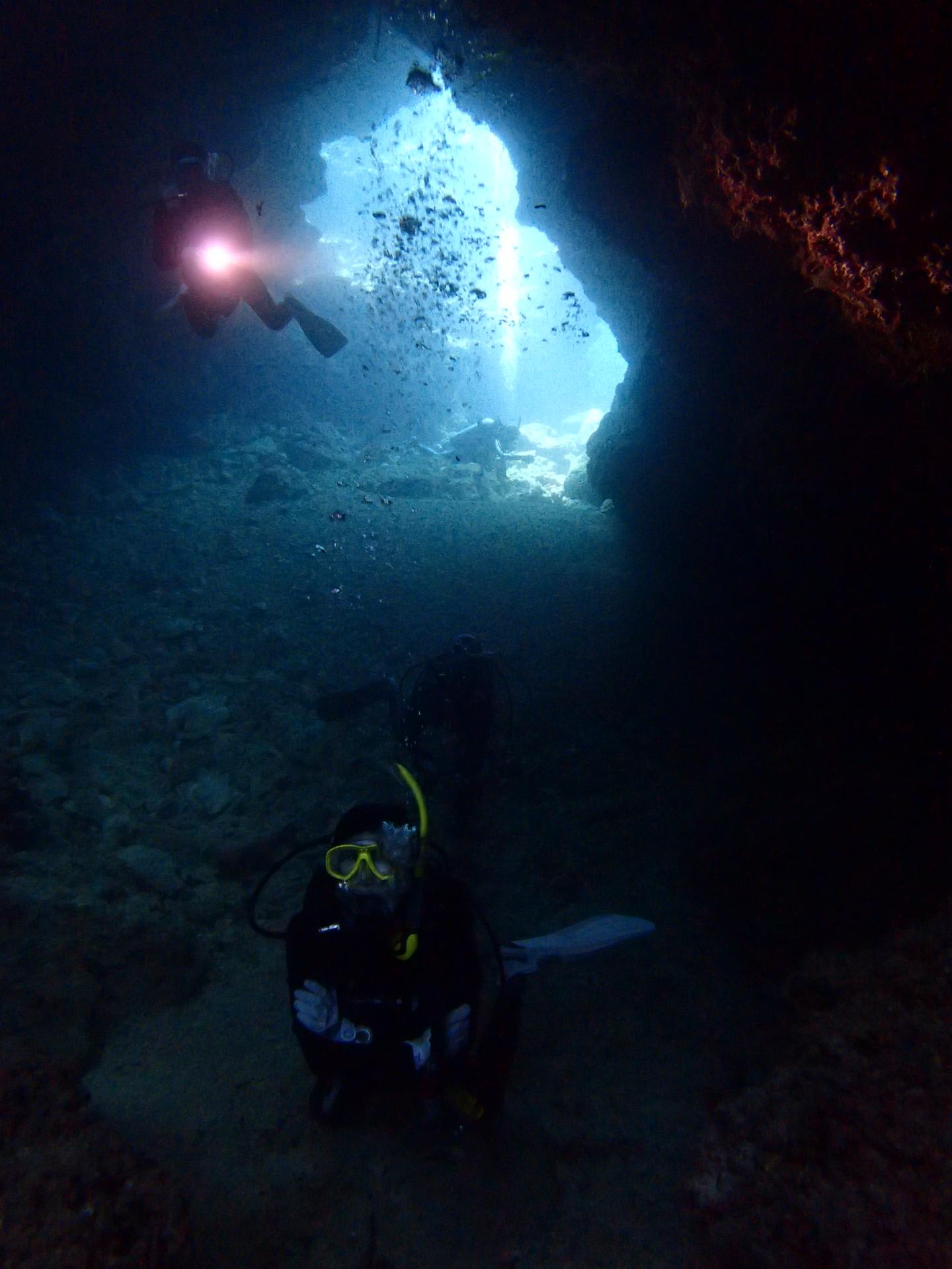 ケーブの中のハタンポ アカマツカサも怪しく光ってステキ♪