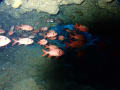 穴の中でぶつかりそうなくらいに群れるテンジクダイに