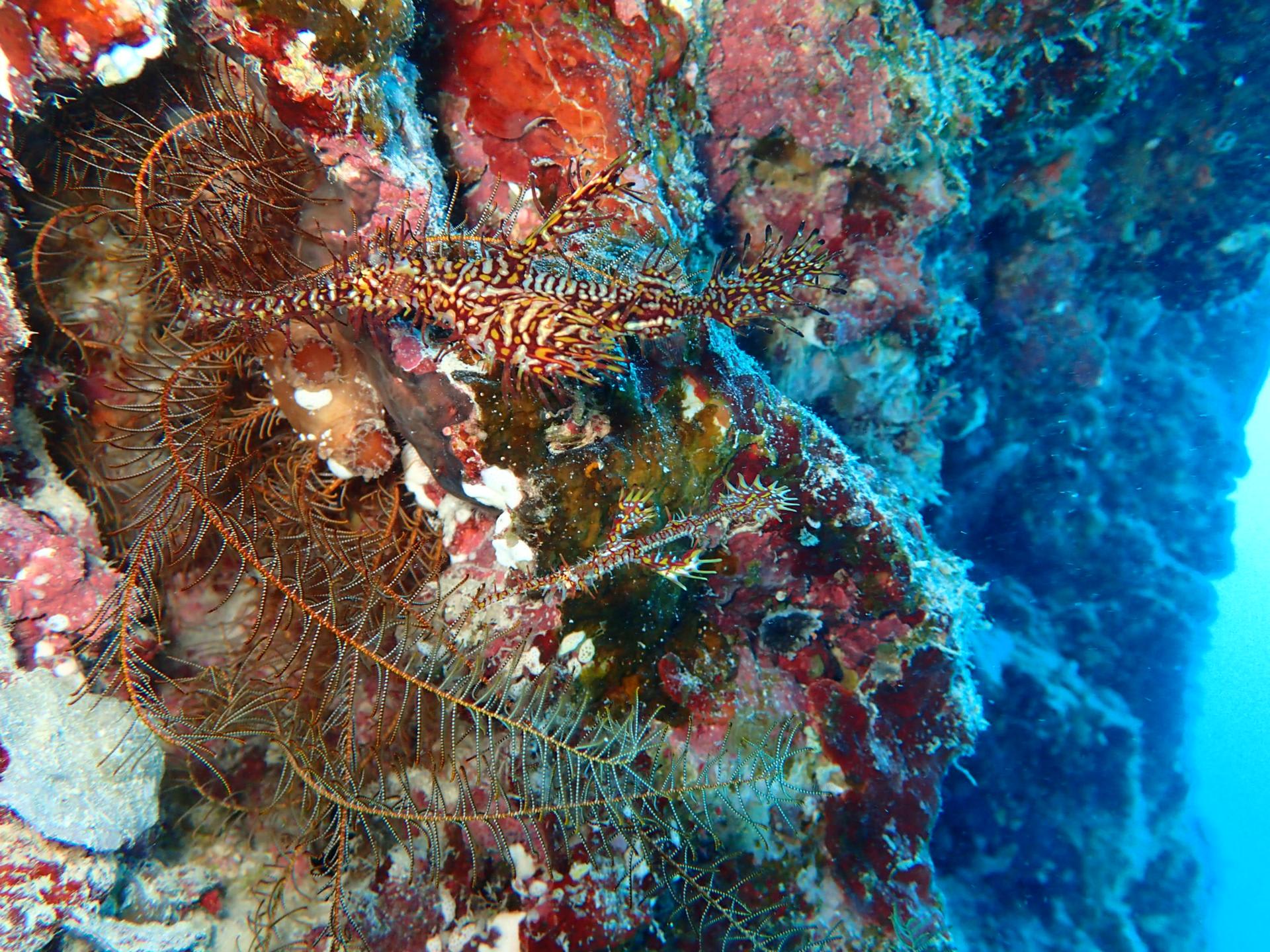 お会いしたり、岩に擬態してスカシテンジクダイを食べようとしている