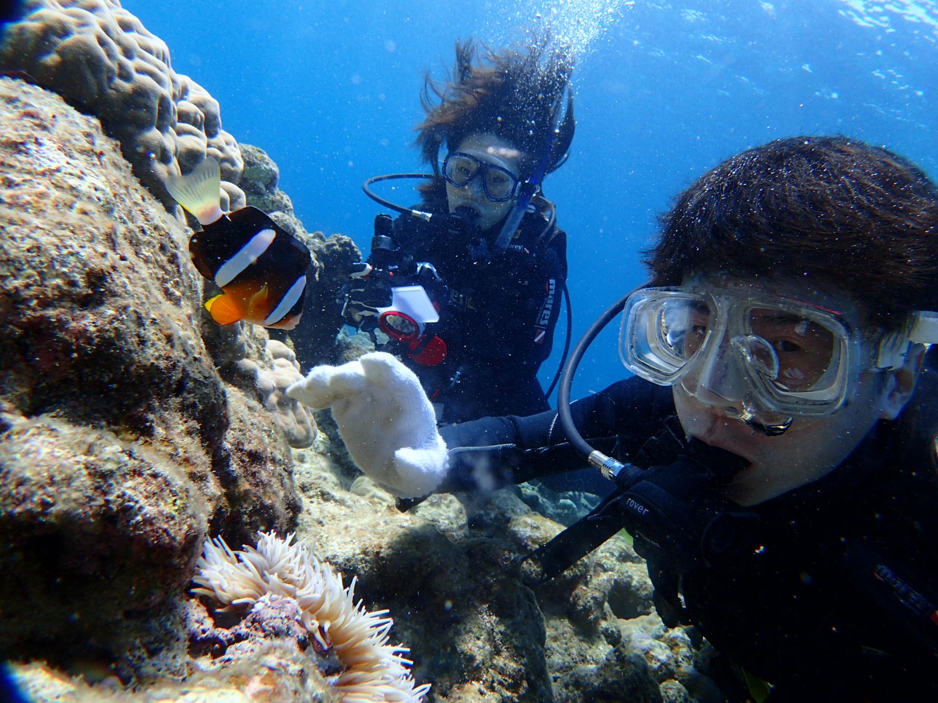 てるぽん率いるチビ船チームは、到着ダイブで名蔵湾へ~!