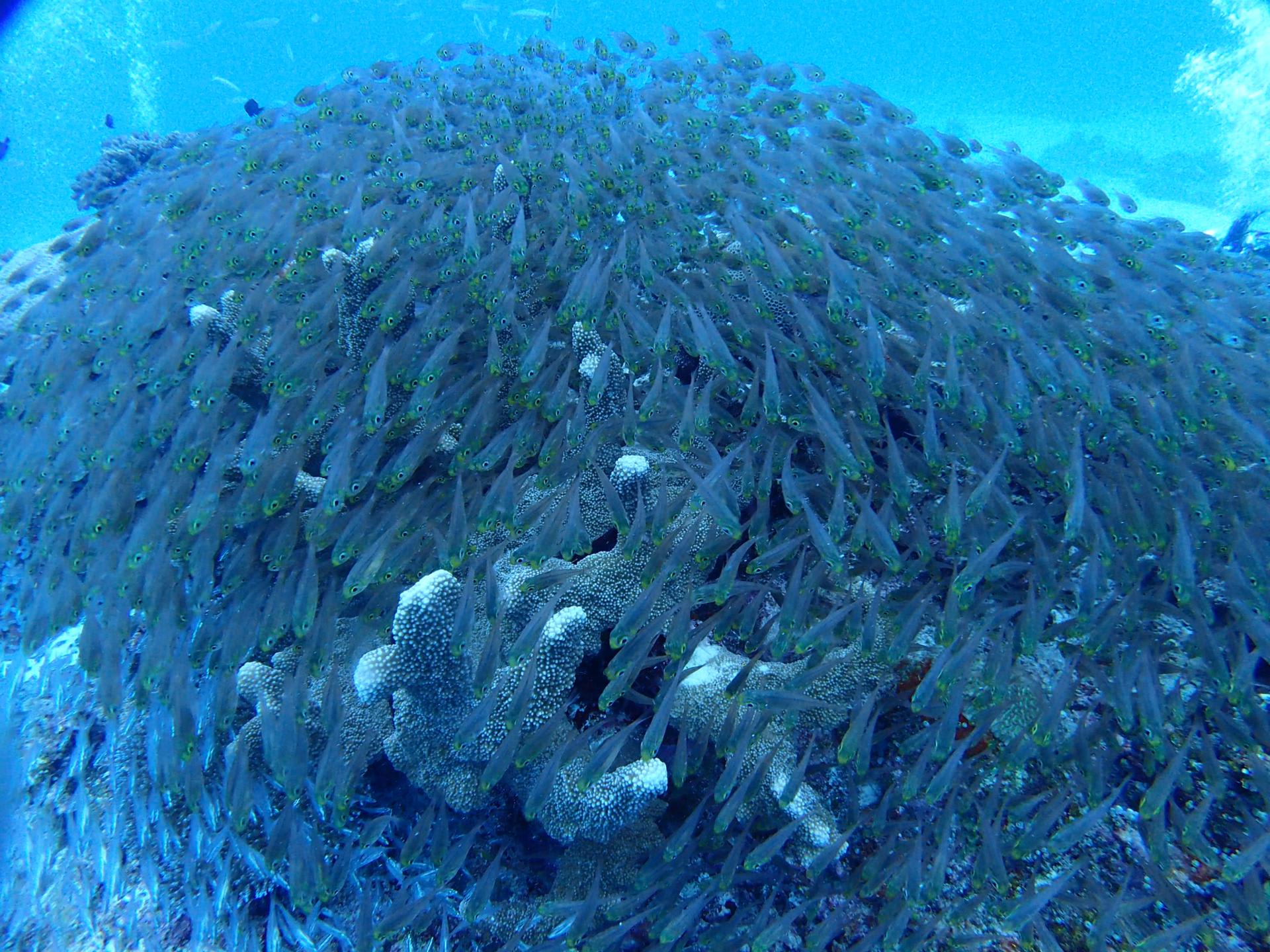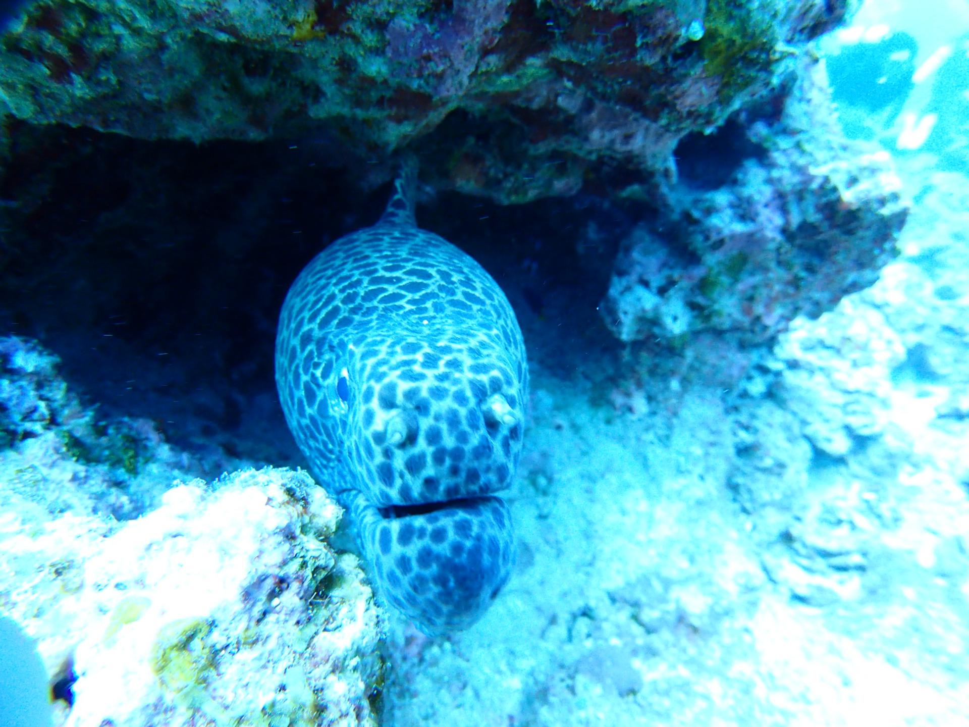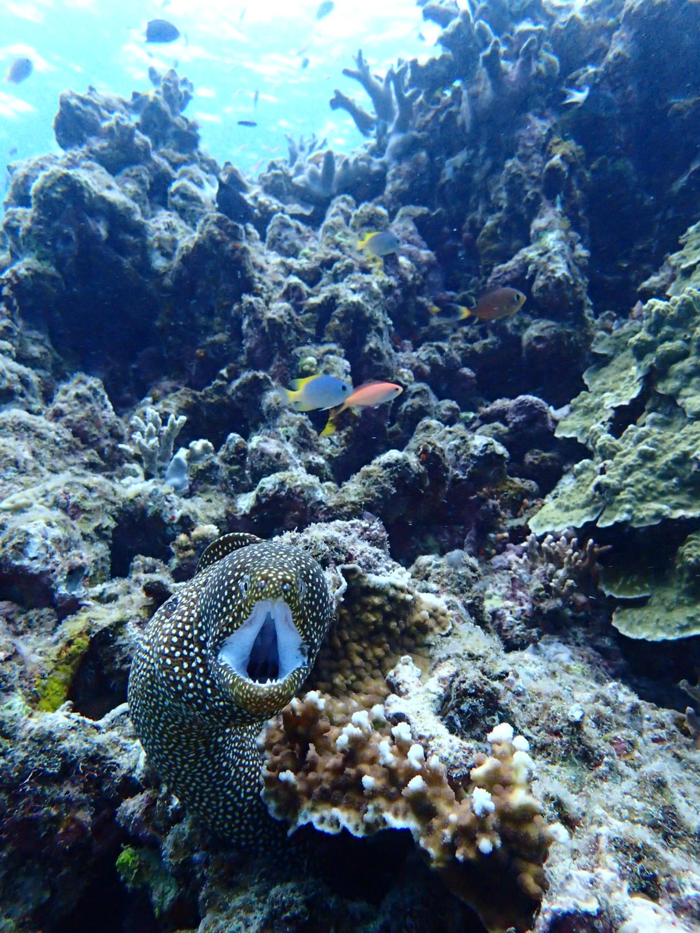 壁のように群れるグルクンや、大きなウツボも登場で